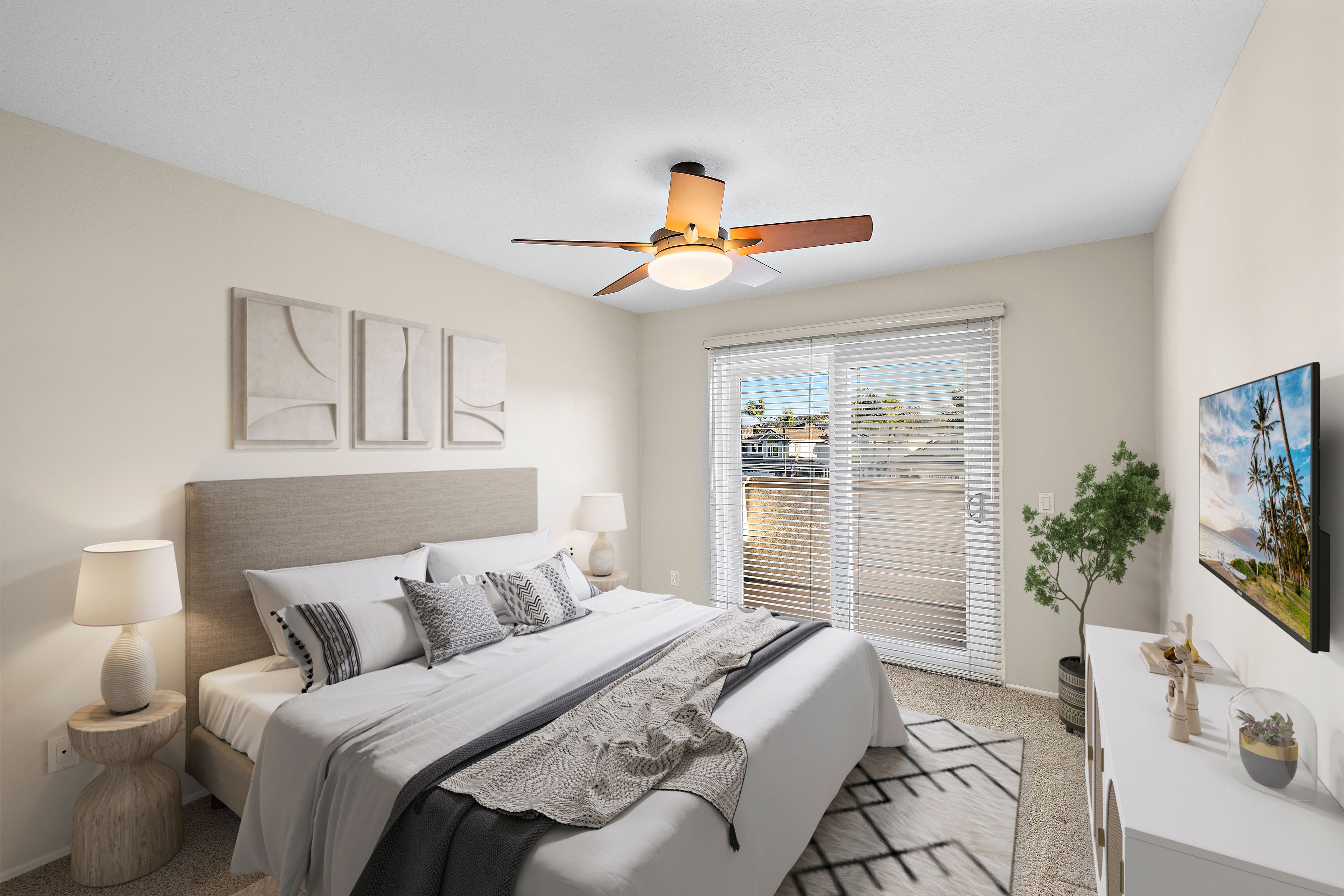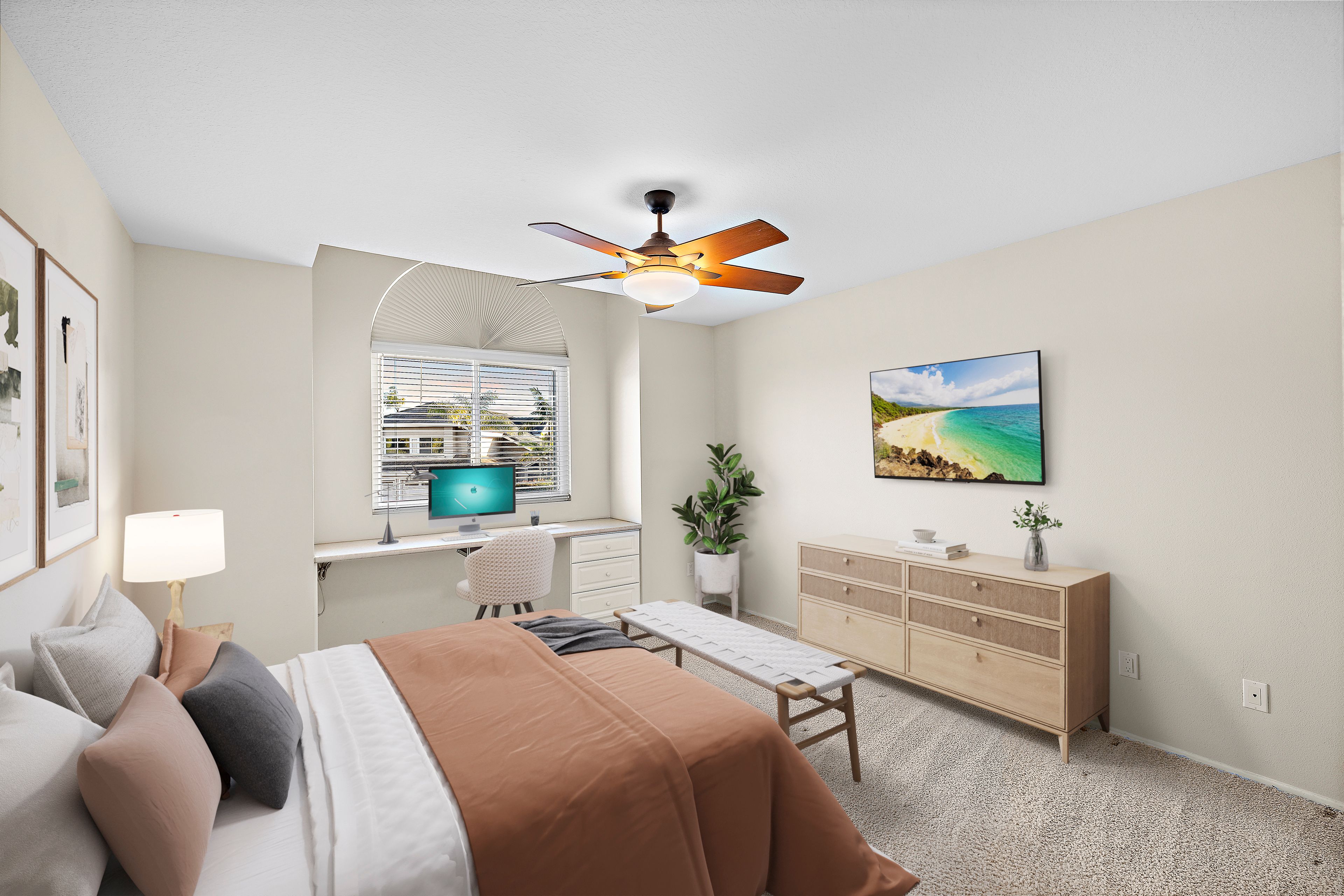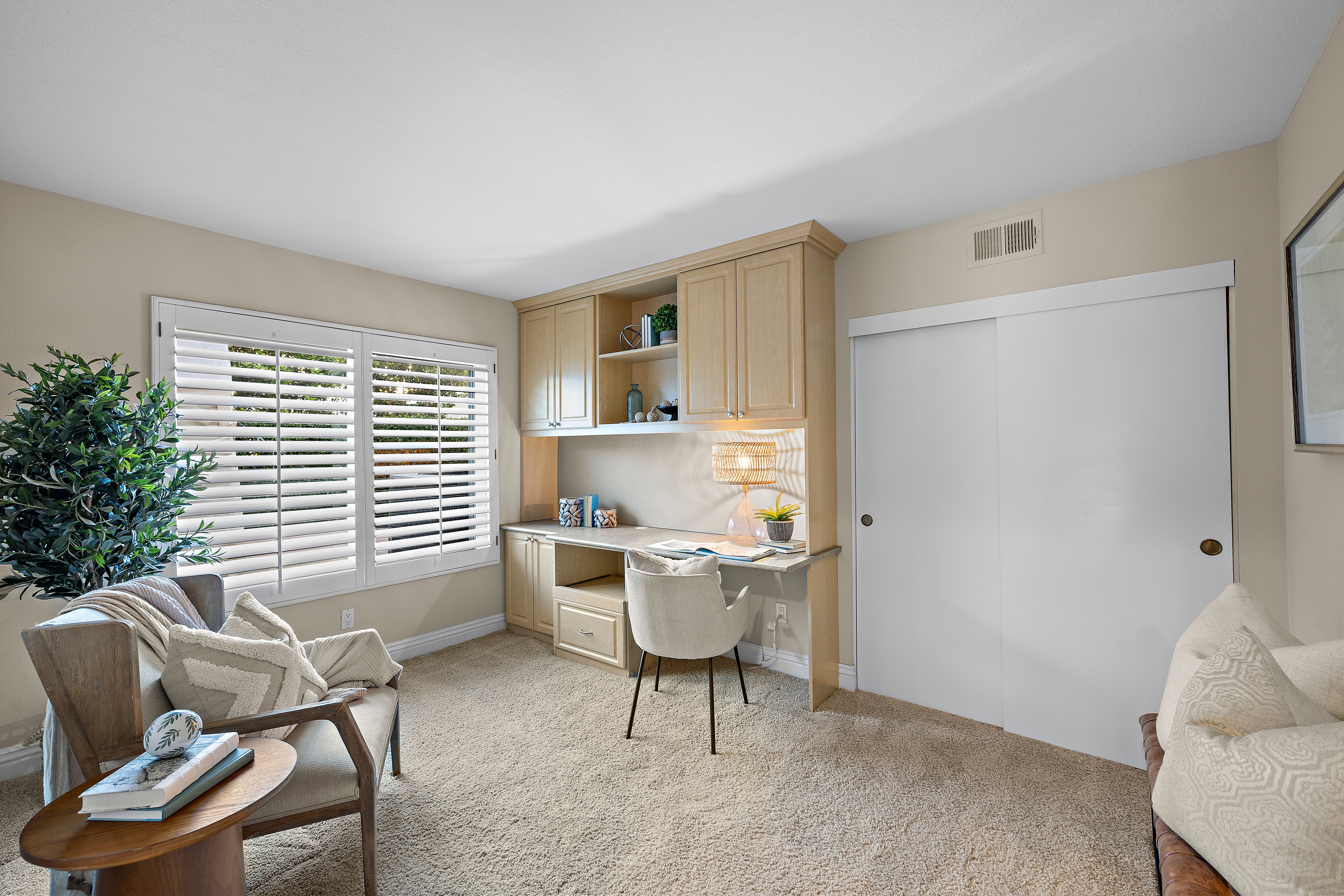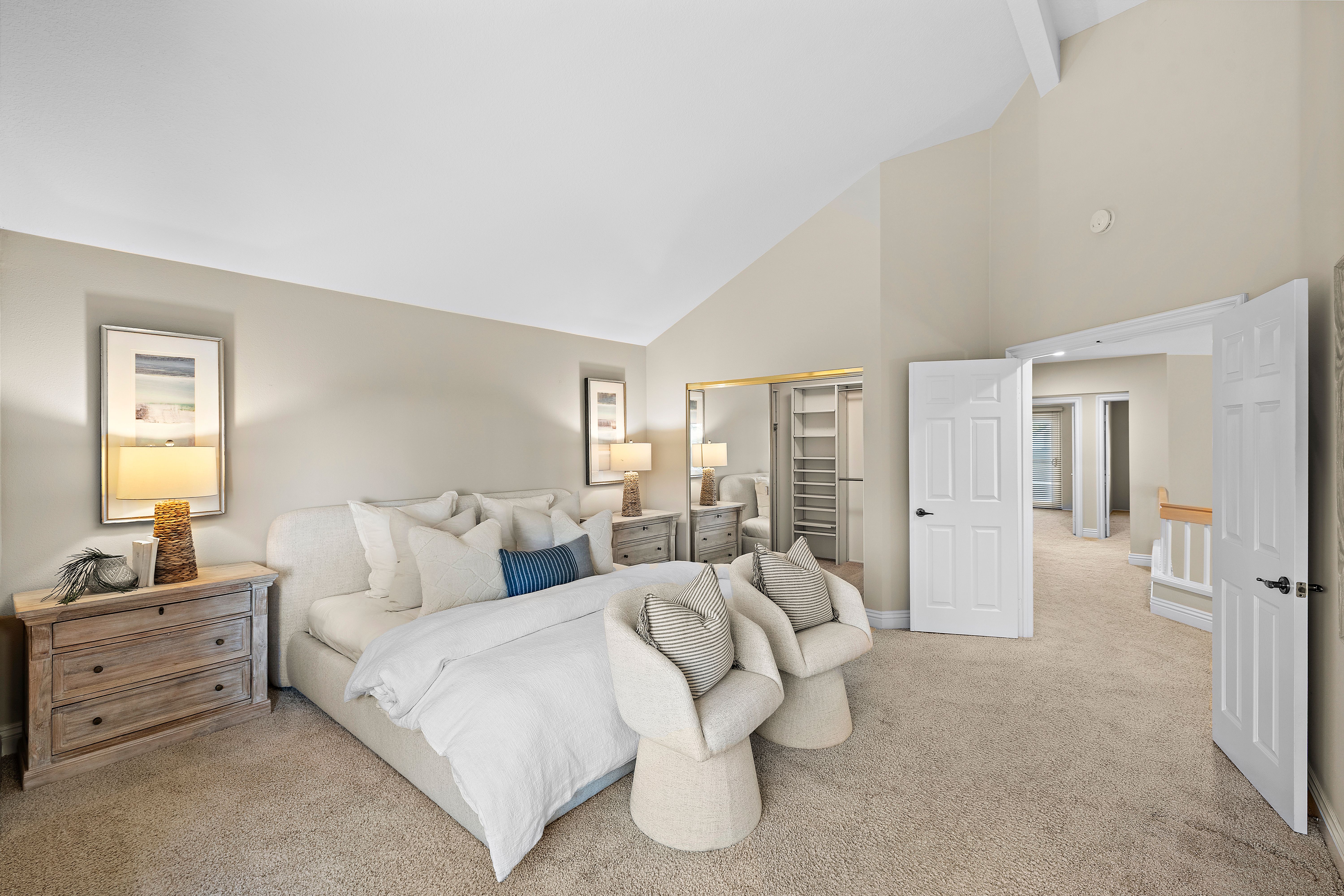 A STANDOUT OFFERING, defined by its EXTRAORDINARILY LARGE AND RARELY available lot size, this property presents a unique opportunity to enjoy space, privacy, canyon and city light views, and a true resort-style setting. Positioned at the end of a quiet cul-de-sac, the expansive grounds immediately set it apart—something not easily found. Thoughtfully designed to evoke the feeling of a private Hawaiian retreat, the backyard is the true centerpiece—lush, expansive, and layered with amenities that create a relaxed, elevated lifestyle. A sparkling pool anchors the space, complemented by a putting green, palapa-covered sandy lounge area, covered patio, built-in BBQ station, and a generous side yard offering flexibility for additional vehicle storage or future expansion. Inside, the home offers a functional and well-balanced layout with four bedrooms and three full bathrooms, with one bedroom and bath located on the main level. Vaulted ceilings and abundant natural light enhance the living spaces, while the floorplan creates a seamless connection between formal and casual areas. As you move toward the rear of the home, the layout transitions into an open-concept family room with a gas fireplace, seamlessly connected to the kitchen and breakfast nook, all overlooking the tropical backyard. Upstairs, the bedrooms are thoughtfully positioned for privacy, including a spacious primary suite with vaulted ceilings and a primary bathroom featuring a combination of stone countertops and tile surfaces, custom cabinetry, along with his and her closets. The upstairs hall bathroom has also been renovated with stone and tile surfaces and custom cabinetry. Additional highlights include OWNED SOLAR, dual-pane vinyl-clad windows, upgraded sliding glass door and French doors, a water softener, and a three-car garage with epoxy-coated floors and built-in cabinetry. A rare combination of lot size, location, and lifestyle—properties like this seldom come to market and present a compelling opportunity.