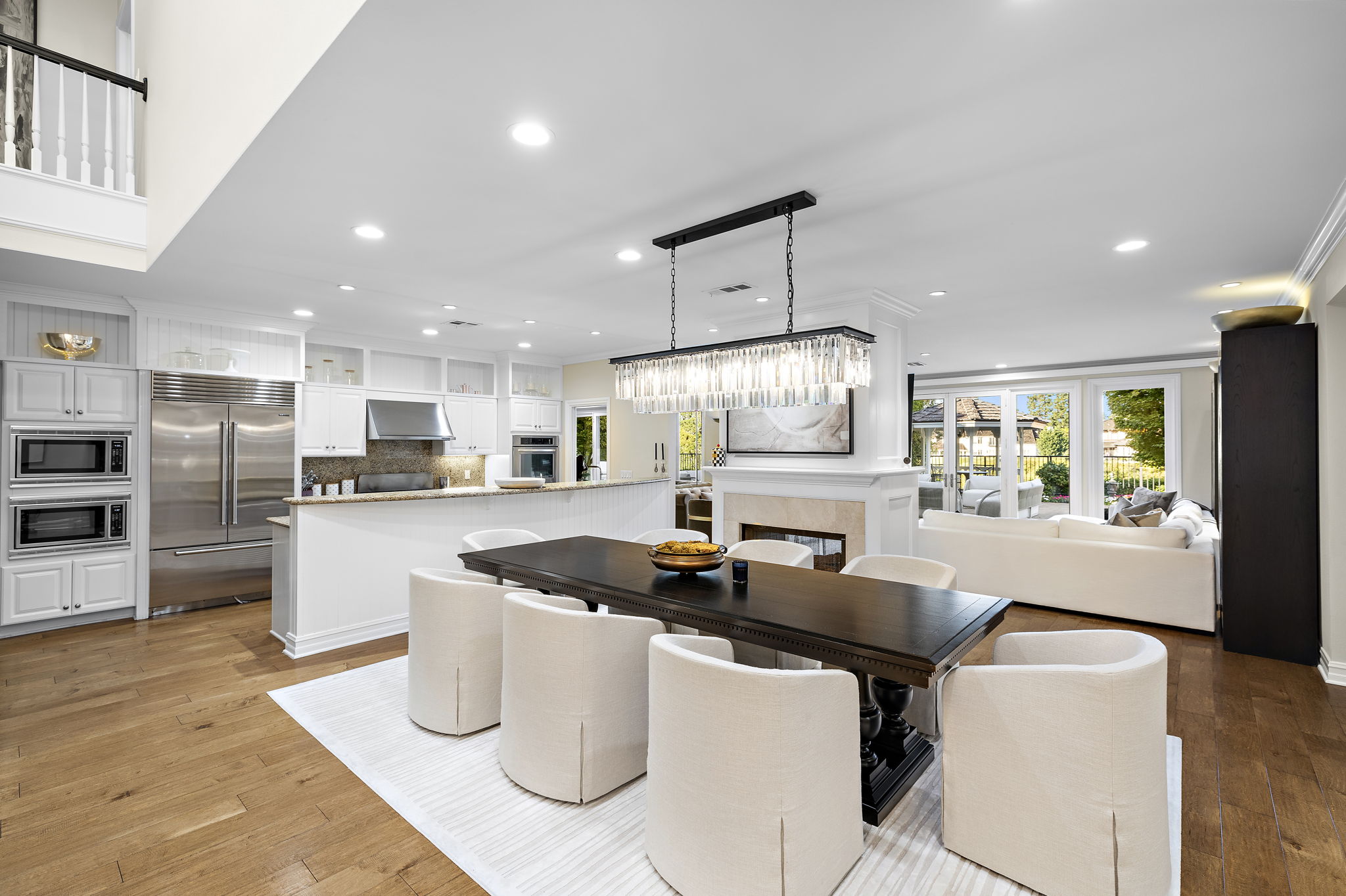 outdoor dining. The kitchen is equipped for entertaining with granite countertops, professional-grade appliances including dual ovens, two dishwashers, a six-