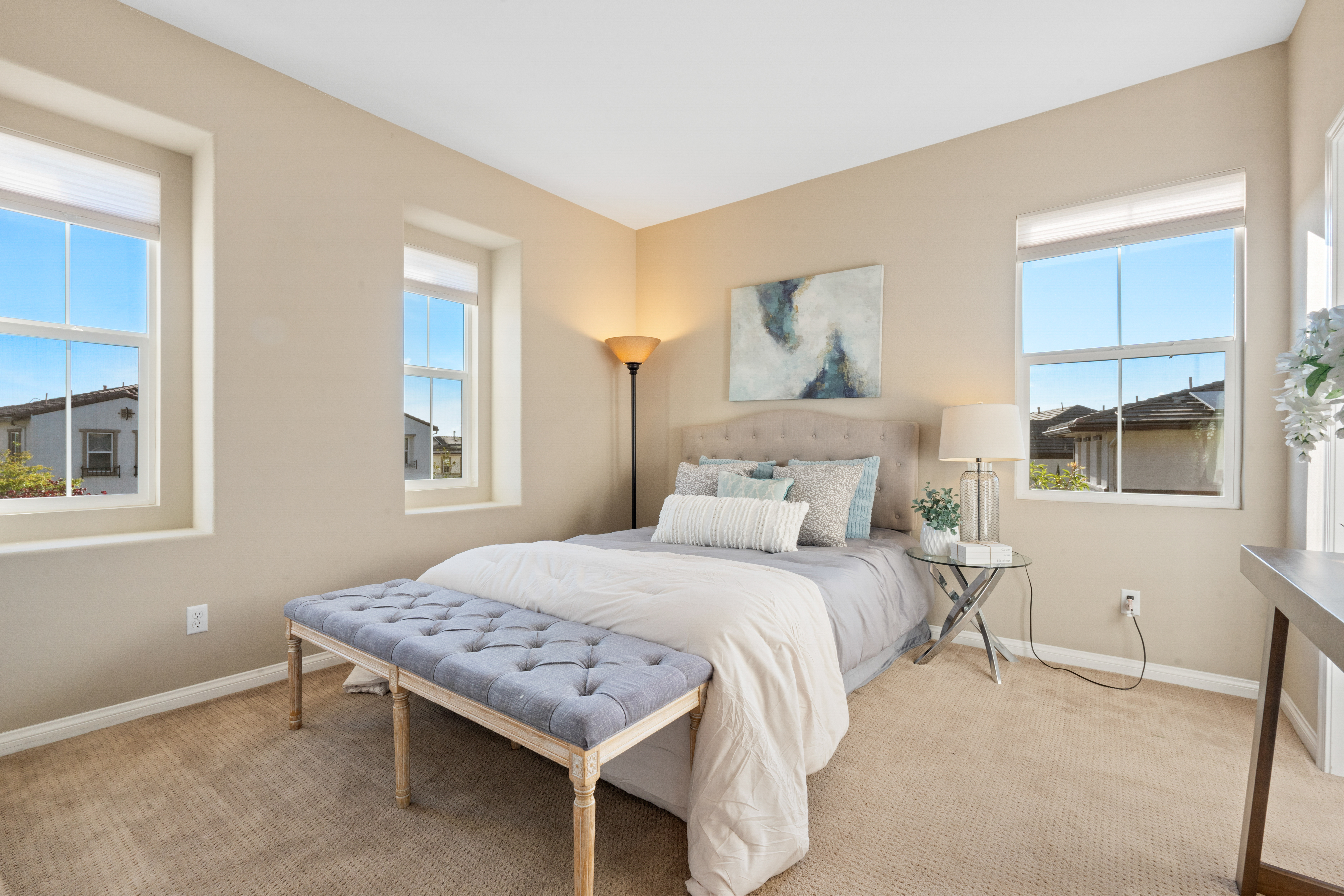 STUNNING VIEW HOME in the highly sought-after Bella Vista enclave of San Elijo Hills, ideally positioned on a premium lot backing to open space with scenic mountain views. This beautifully upgraded 5-bedroom, 4-bath home with a dedicated office and optional bonus room offers a versatile floor plan, including a full bedroom and bath on the entry level, ideal for guests or multigenerational living. Step inside to soaring ceilings and expansive windows that fill the home with natural light, creating a bright, inviting atmosphere. The open layout seamlessly connects the main living areas, perfect for everyday living and entertaining. The gourmet kitchen features granite countertops, a glass tile backsplash, stainless steel appliances, and a large center island. Enjoy indoor-outdoor living with sliding doors opening to a private backyard retreat complete with a covered patio, mature landscaping, low-maintenance turf, and a spa, all set against a tranquil greenbelt backdrop. Upstairs, the spacious primary suite offers a private view deck, perfect for relaxing. Close to parks, trails, top-rated schools, Town Center, dining, and beaches. This home truly has it all! STUNNING VIEW HOME in the highly sought-after Bella Vista enclave of San Elijo Hills, ideally positioned on a premium lot backing to open space with scenic mountain views. This beautifully upgraded 5-bedroom, 4-bath home with a dedicated office and optional bonus room offers a versatile floor plan, including a full bedroom and bath on the entry level, ideal for guests or multigenerational living. Step inside to soaring ceilings and expansive windows that fill the home with natural light, creating a bright, inviting atmosphere. The open layout seamlessly connects the main living areas, perfect for everyday living and entertaining. The gourmet kitchen features granite countertops, a glass tile backsplash, stainless steel appliances, and a large center island. Enjoy indoor-outdoor living with sliding doors opening to a private backyard retreat complete with a covered patio, mature landscaping, low-maintenance turf, and a spa, all set against a tranquil greenbelt backdrop. Upstairs, the spacious primary suite offers a private view deck, perfect for relaxing. Close to parks, trails, top-rated schools, Town Center, dining, and beaches. This home truly has it all!