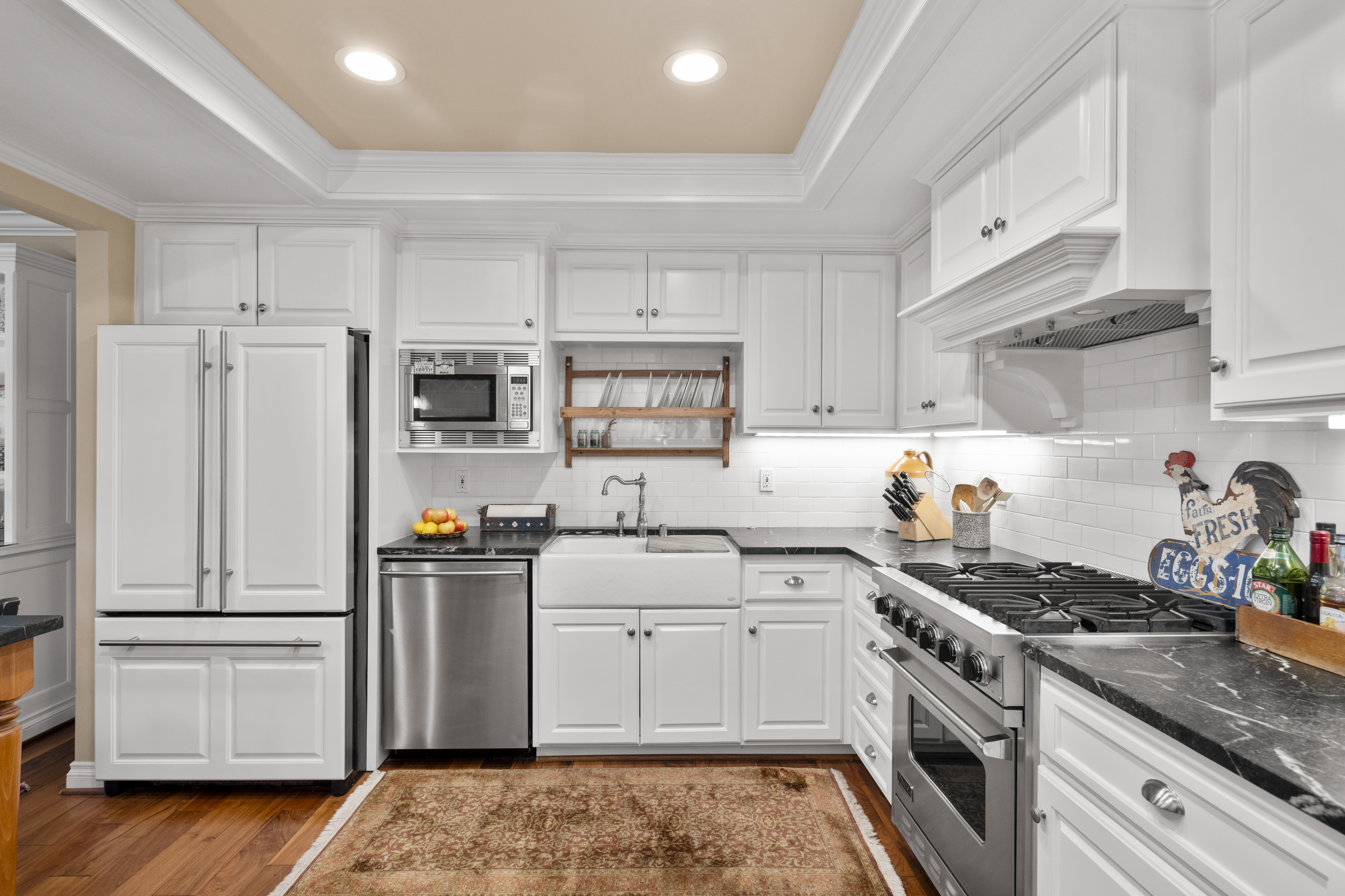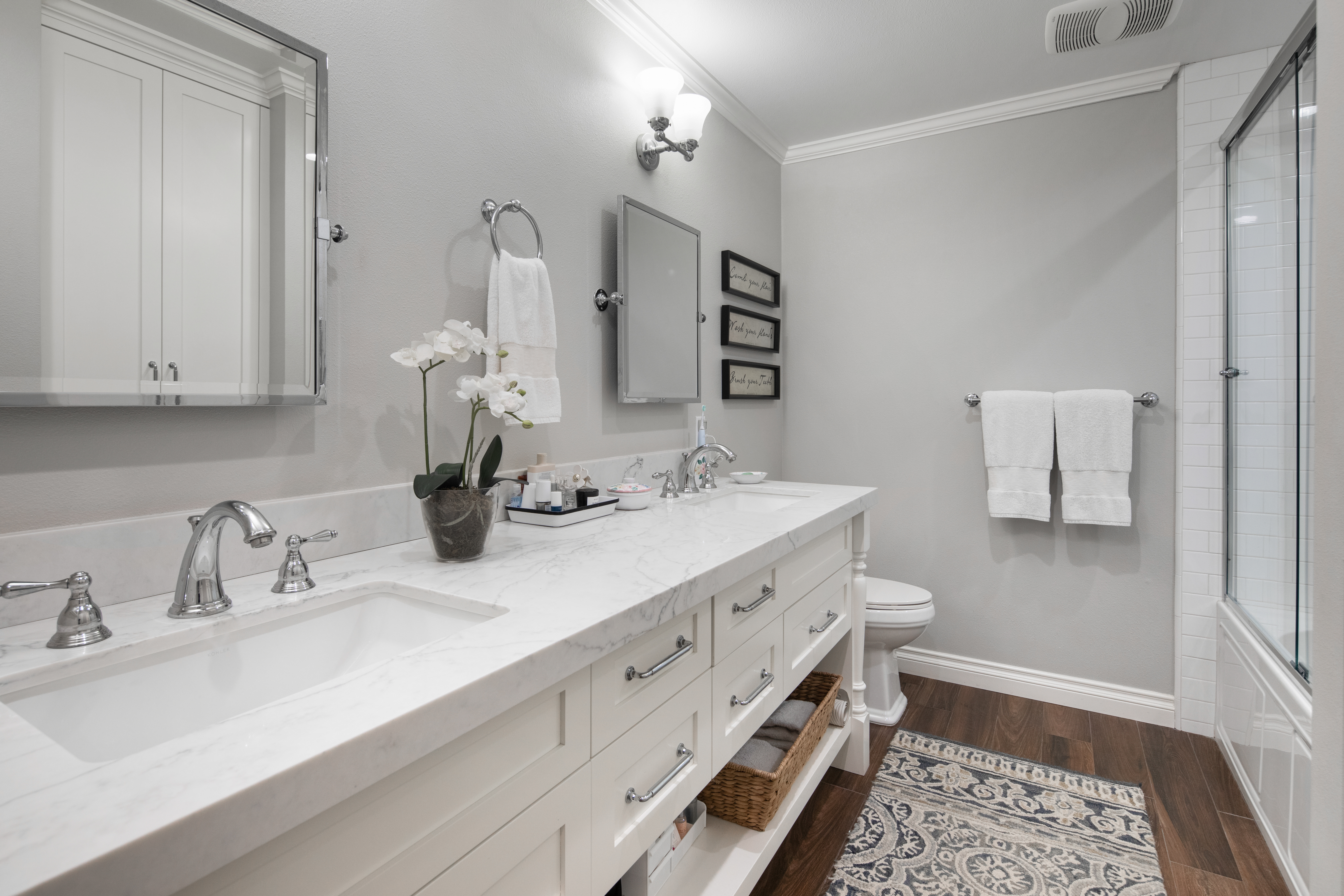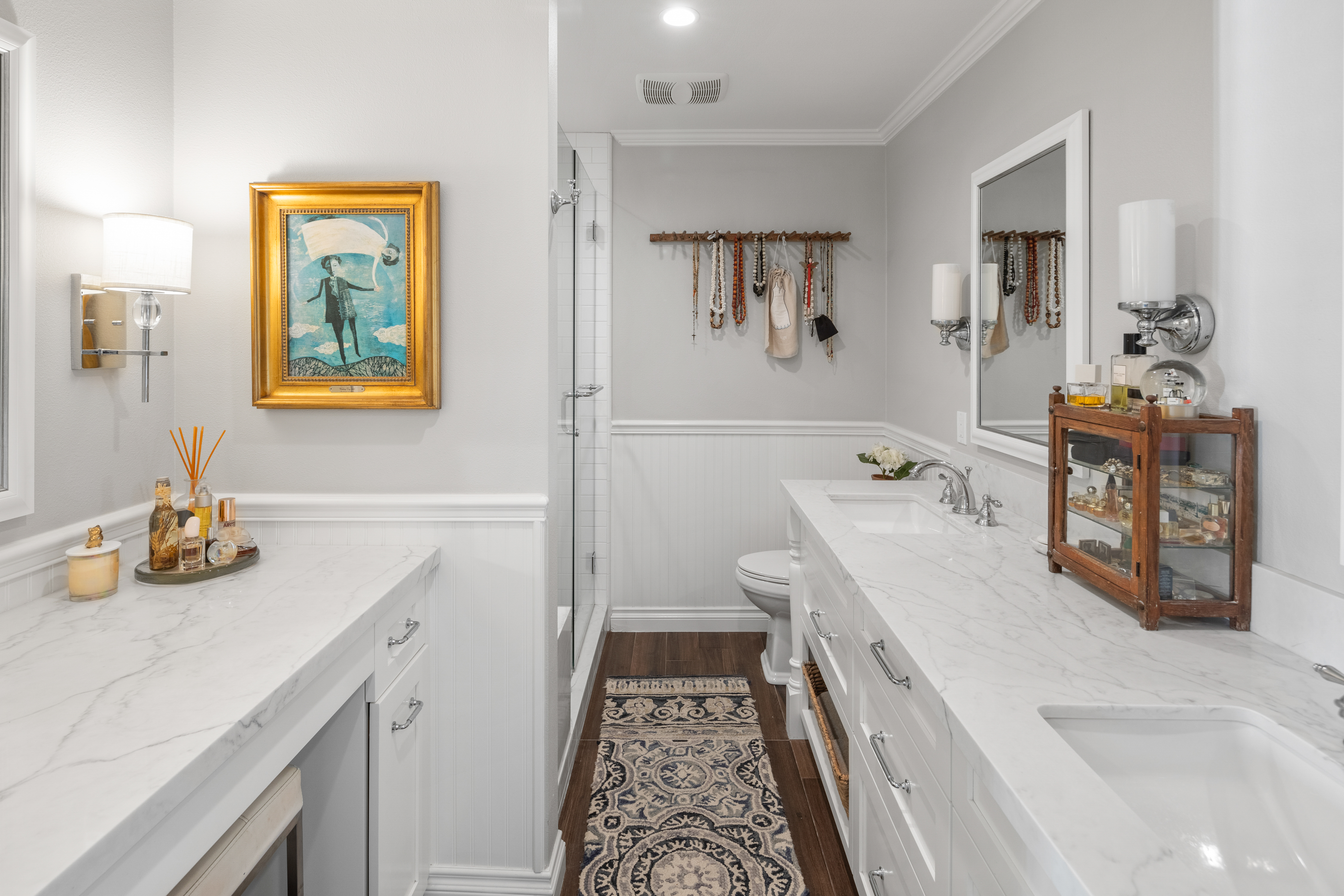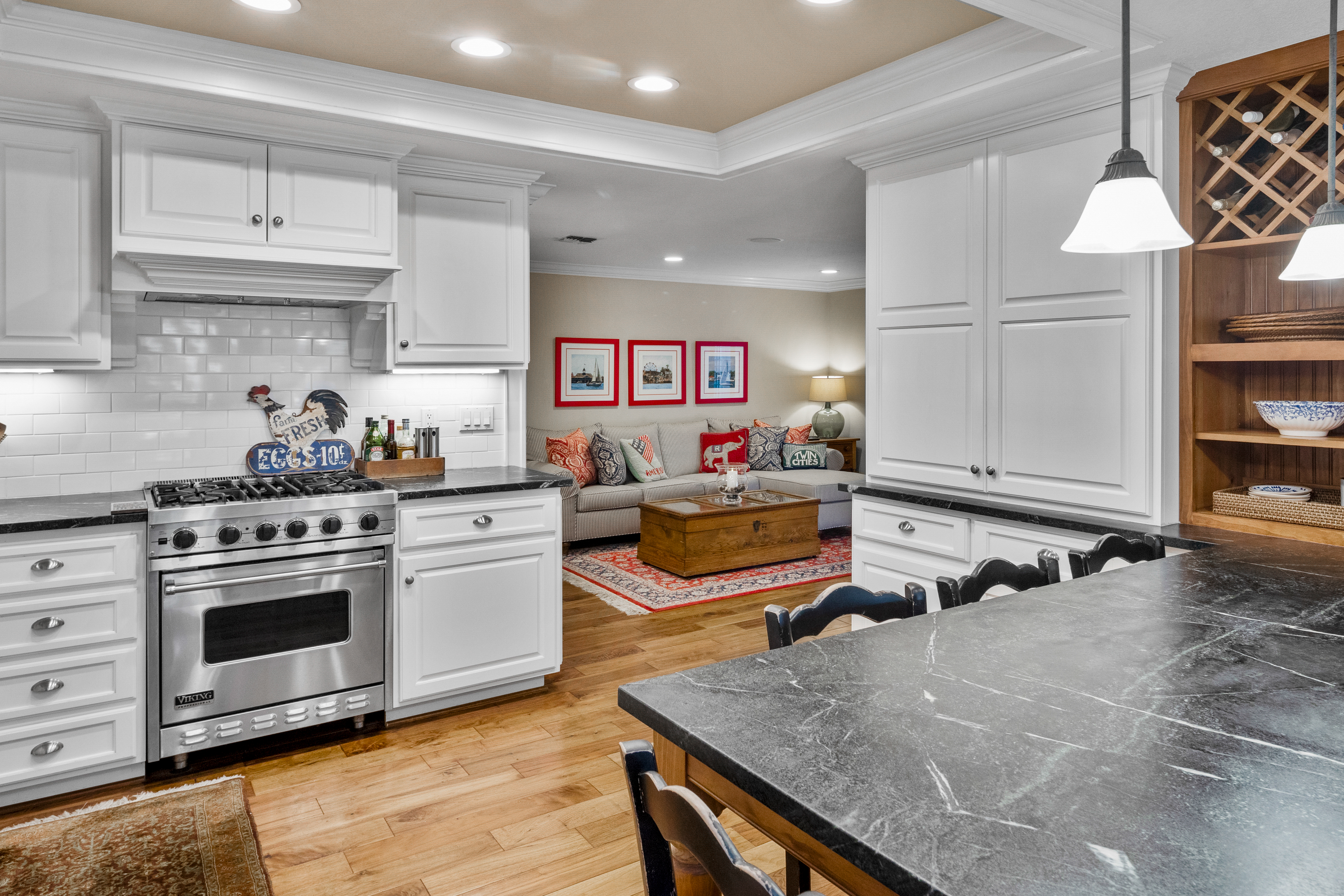 If America was a house, it might look something like this. Nestled along the tranquil edge of the Lake Forest Keys, this lakefront home captures the essence of laid-back all-American living, with a polished yet timeless sensibility. Designed to feel both grounded and elevated, the home leans into a warm palette of deep reds, crisp whites, natural woods, and aged metals, offering an atmosphere that feels classic without being nostalgic, and styled without ever feeling forced. Inside, the layout unfolds gently, with the living room, kitchen, and dining spaces seamlessly connected and oriented to take full advantage of the water views. At its heart, the living area centers around a fireplace framed by large windows, where sunlight plays off the ever-changing reflections of the lake outside. The kitchen, both functional and welcoming, features shaker cabinetry, stone countertops, and a large breakfast bar that invites casual conversation or weekend breakfasts with family. It’s a space that feels lived-in, loved, and ready for both slow mornings and spontaneous gatherings. Outdoors, the experience continues with a generous patio that leads to a private dock, your front-row seat to everything the lake has to offer. From sunlit mornings to lantern-lit nights, this is a place designed for gathering, unwinding, and simply being present. Upstairs, each bedroom carries its own quiet charm, tied together by a cohesive design thread of comfort and classic finishes. The primary suite offers sweeping views of the lake, and the gentle rhythm of the water becomes part of the everyday routine. Throughout, thoughtful details like custom wooden shutters, soft lighting, and heritage-inspired accents create a sense of ease and familiarity. Rooted in tradition but designed for modern life, this home is more than just a residence, it’s an embodiment of comfort, character, and the quiet luxury of lakeside living in one of Orange County’s most beloved communities.