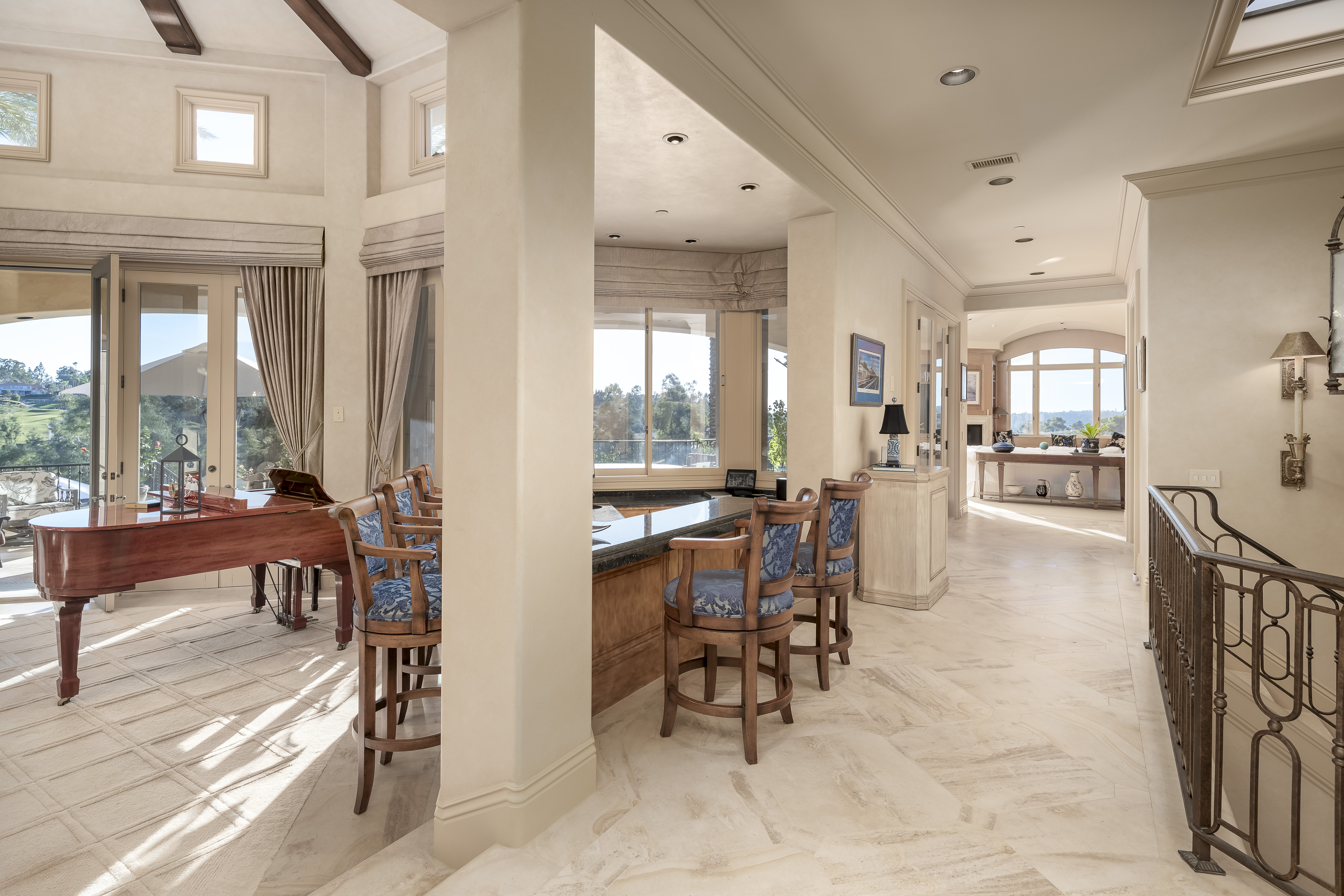 Live the luxury lifestyle on a premier view lot within the exclusive guard-gated community of The Farms in Rancho Santa Fe. Perfectly positioned to capture sweeping 270+ degree views of the newly renovated "Farms" golf course, mountains, and Pacific Ocean, this custom estate spans over 10,000 sq ft of refined living. Designed for effortless indoor-outdoor living, the home features soaring ceilings, expansive windows, and French doors that fill the interiors with natural light. A grand courtyard entry leads to elegant formal living and dining spaces, a private office/library, and a chef’s kitchen with top-tier appliances, large island, butler’s pantry, and casual dining area—opening to a warm family room and expansive veranda. The luxurious primary suite offers dual baths, dressing rooms, and a private view balcony. Four additional ensuite bedrooms and resort-style amenities—including theater, gym, wine cellar, sauna, elevator, pool, spa, and 4-car garage—complete this exceptional offering.