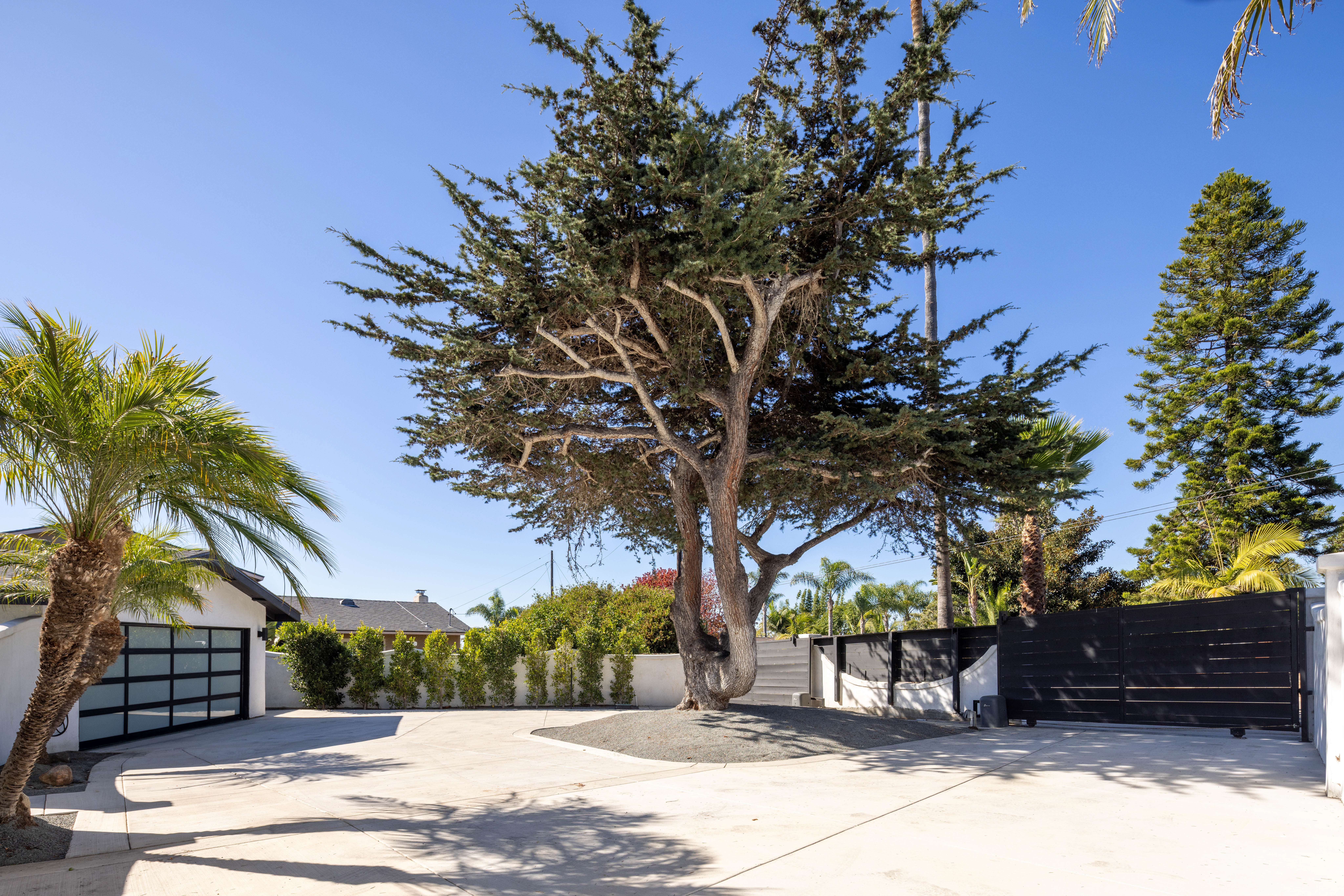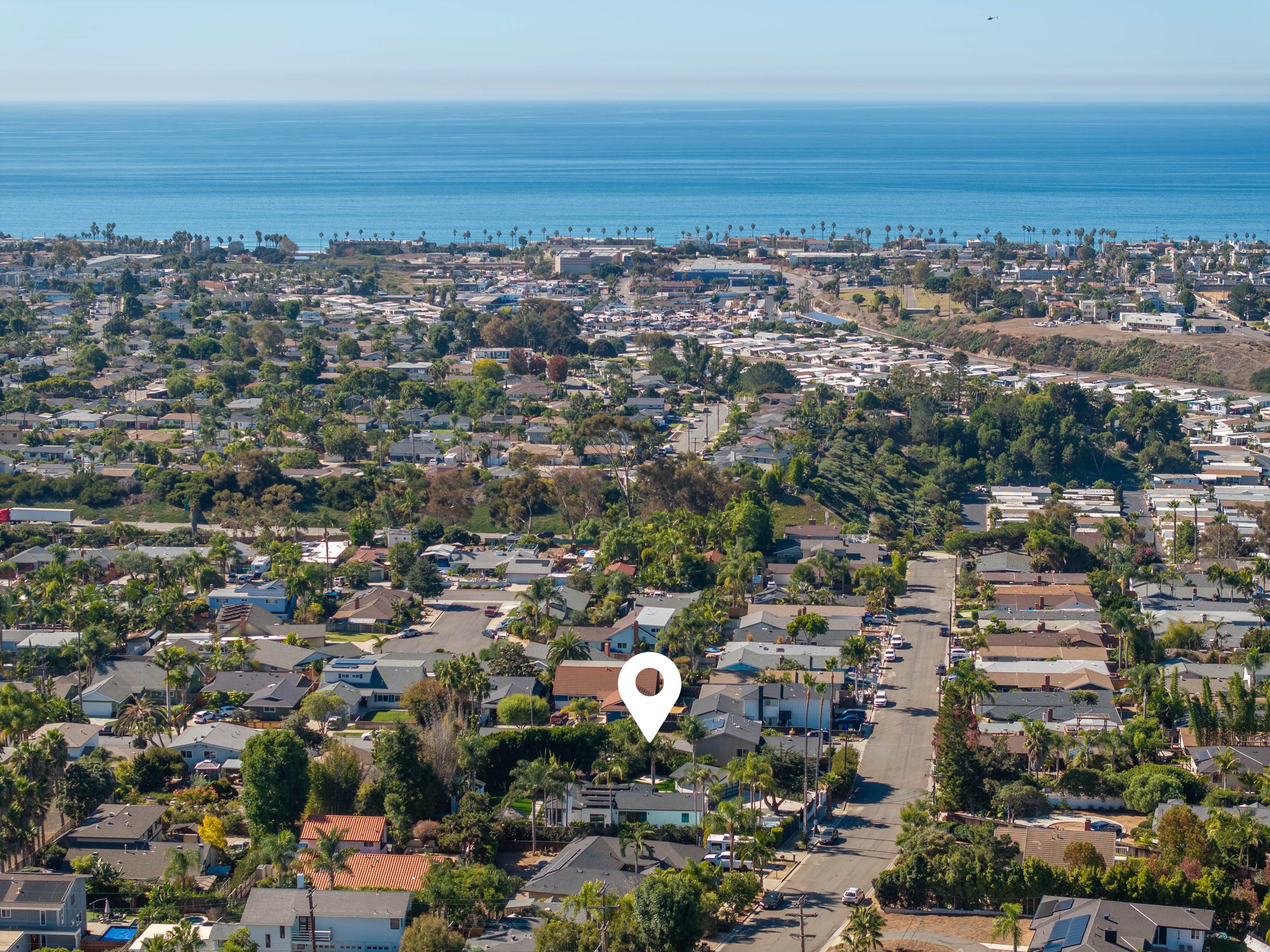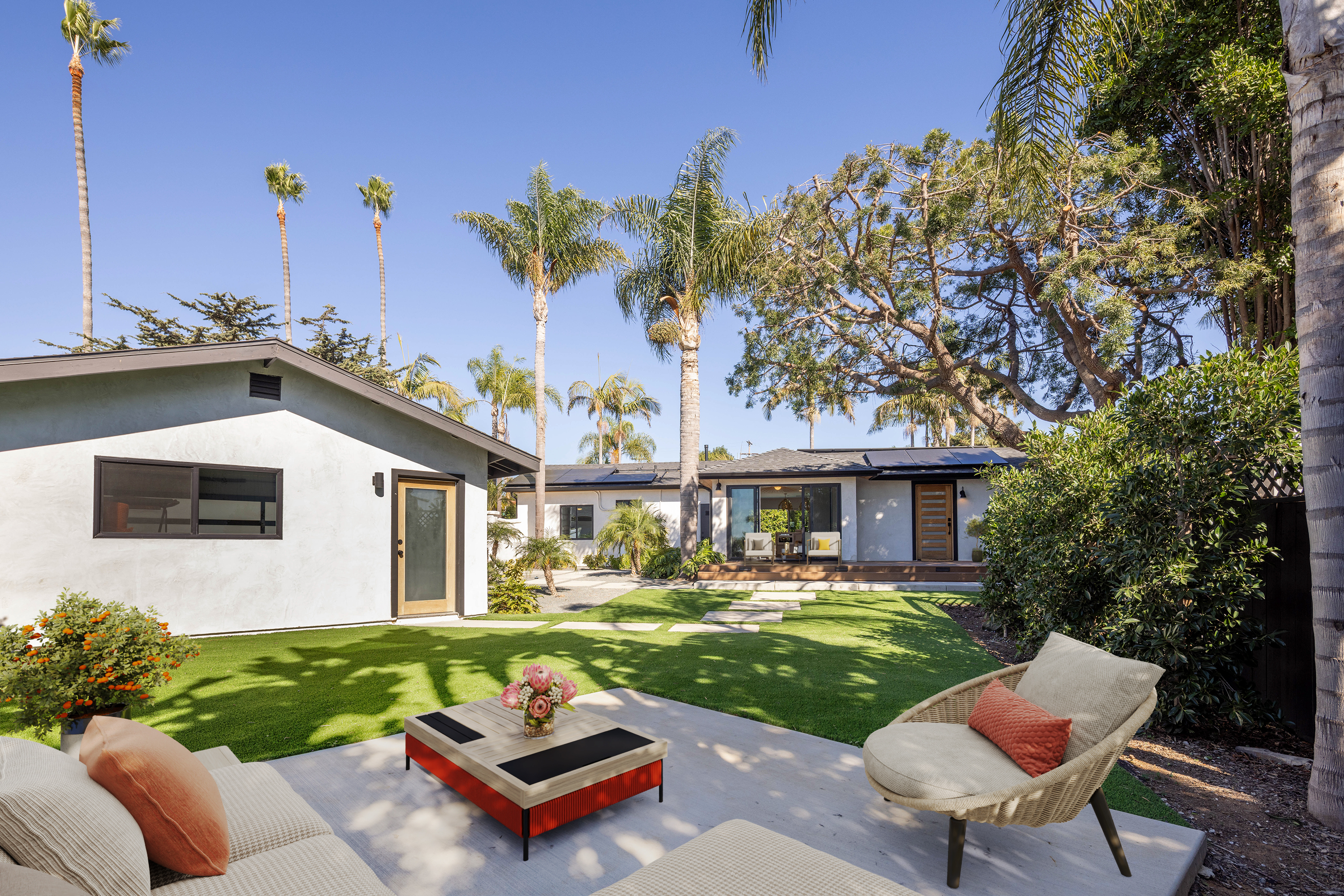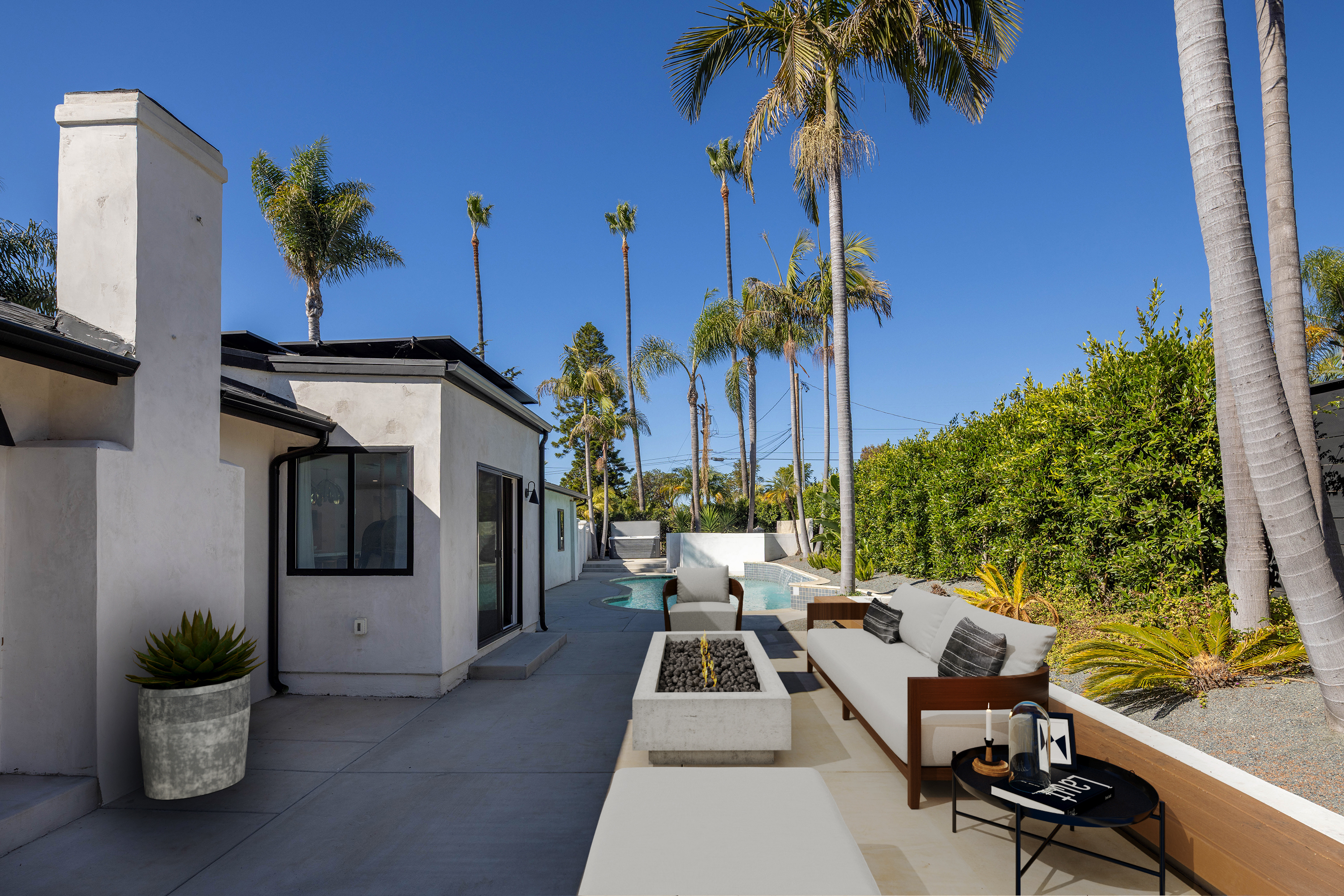 Stunning single-level coastal modern smart home with ocean views, cohesive upgrades, and an expansive backyard oasis in Fire Mountain, just minutes to the beach. Recently reimagined with high-end design in mind and curated by a professional artist. Filled with natural light, the home features open living, multiple seating areas, and an alcove dining room. The gourmet kitchen boasts two-tone linen and Halifax Oak cabinetry, luxury white Café appliances, and porcelain countertops. Sliding glass doors frame the kitchen and living areas from all sides, expanding the space to the wraparound yard, creating an indoor-outdoor lifestyle. The layout includes dual primary suites, each with an ensuite bath featuring decorative tile and custom lighting. Perfect for entertaining, the outdoor space offers a pool with water features, hot tub, raised seating with firepit, and multiple areas for dining & lounging, including a built-in bbq bar with Tahitian-style palapa. Additional highlights include owned solar, two Tesla batteries, EV charger, smart lighting and AV system with indoor & outdoor surround sound. An oversized detached two-car garage with epoxy flooring and two large sheds provide additional space for storage, a gym, or studio office. Dual electric gates with circular driveway offering security, privacy, and ample parking. Within biking distance to the beach and close to top-rated schools, parks, shopping, and dining. Enjoy coastal living at its best.