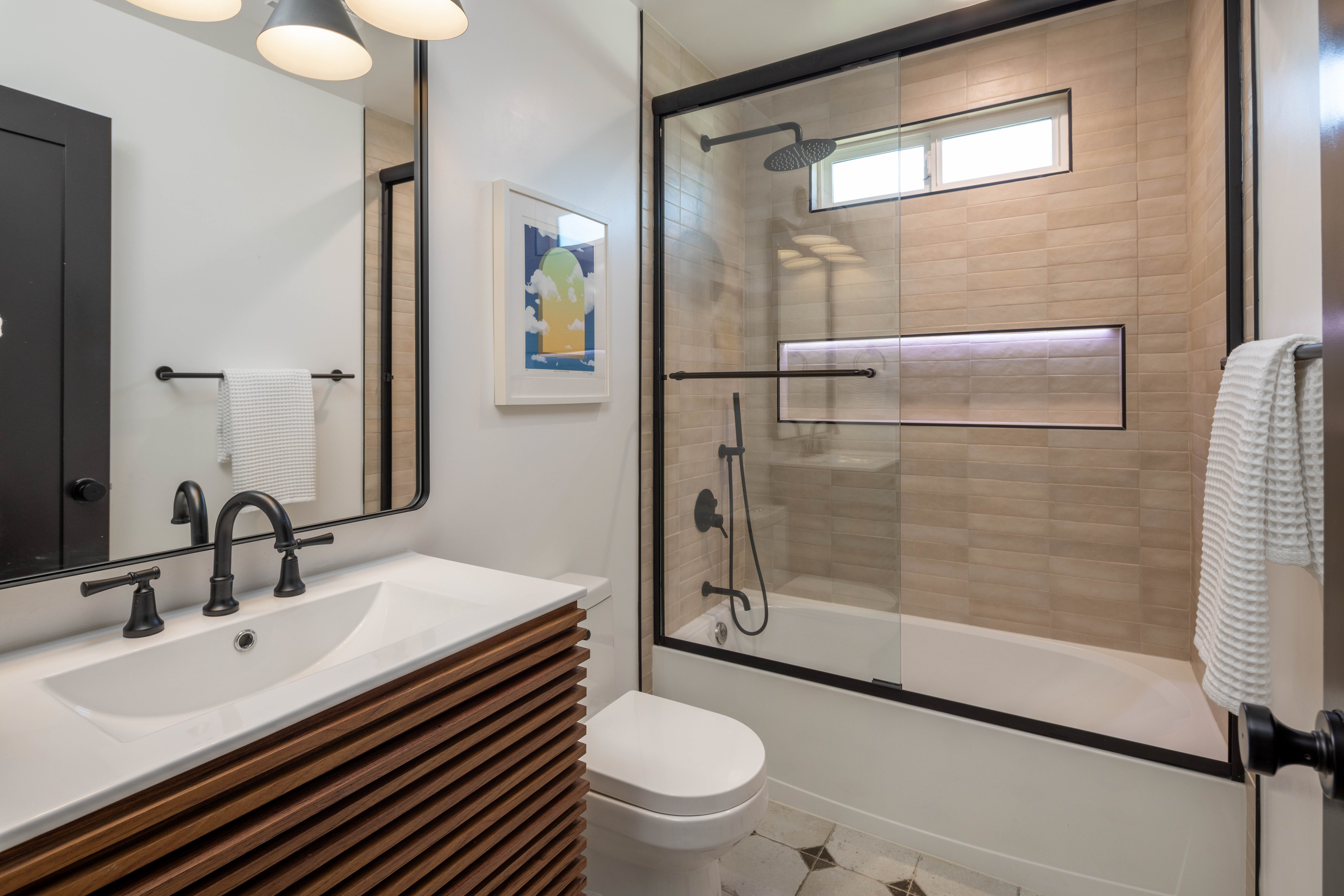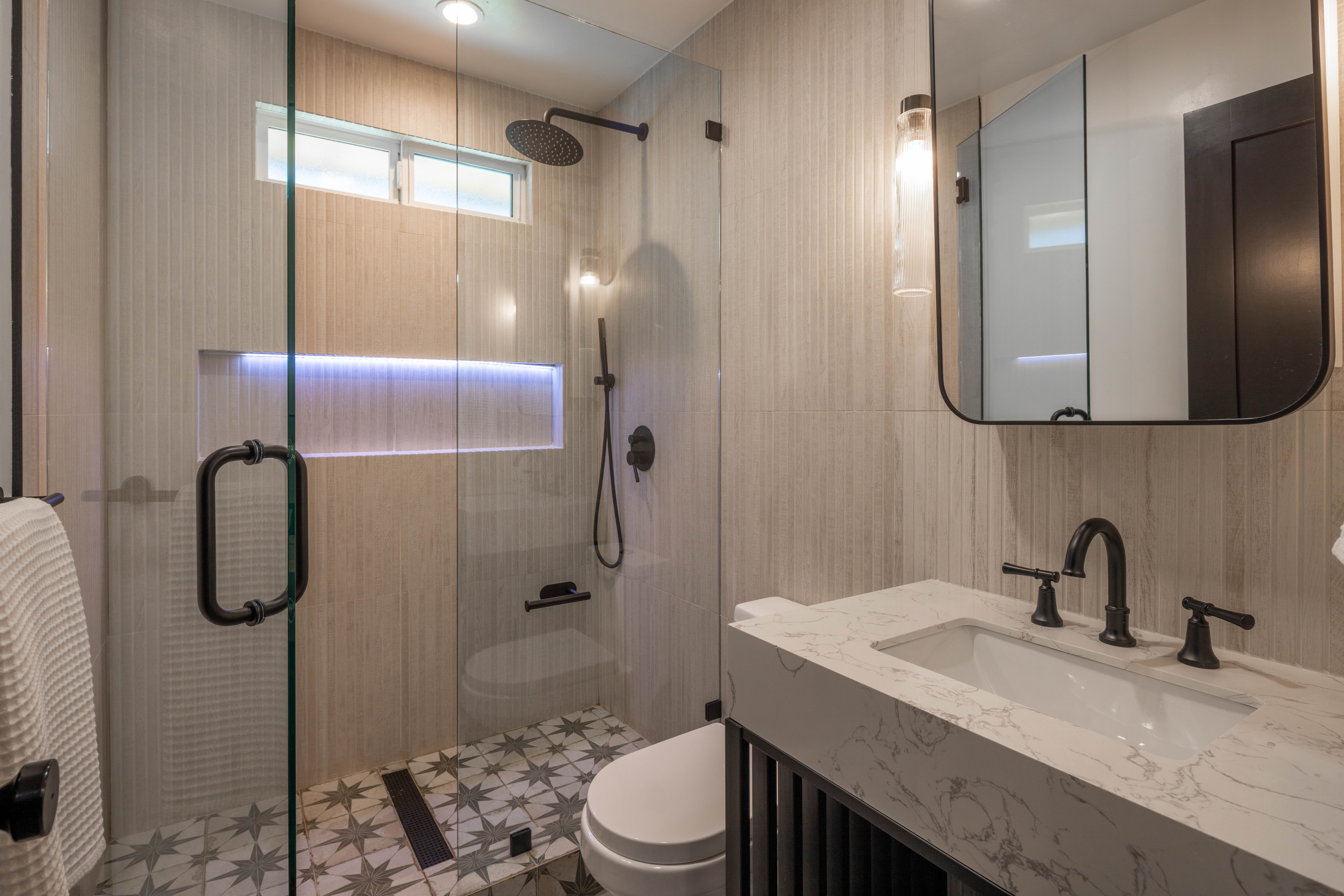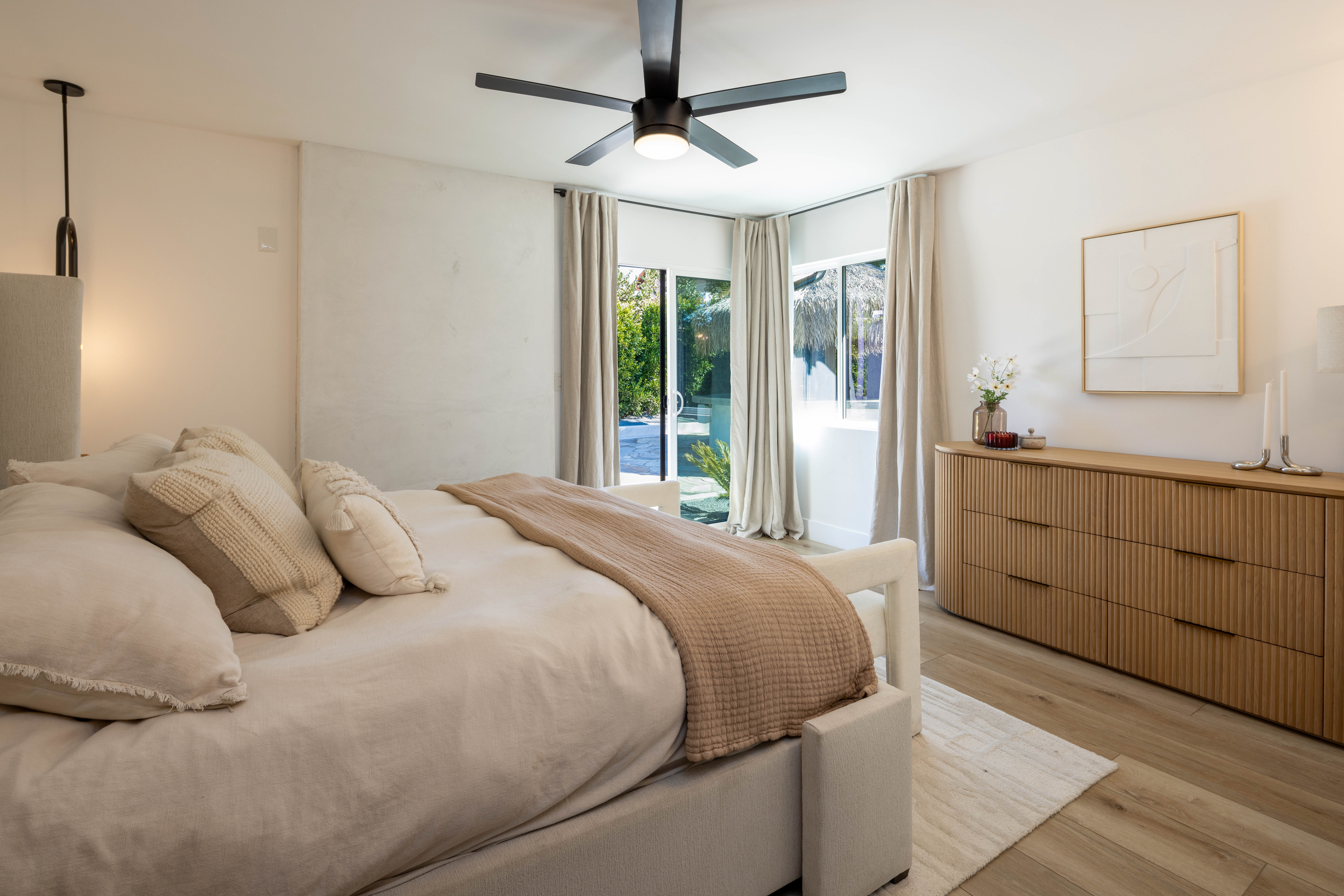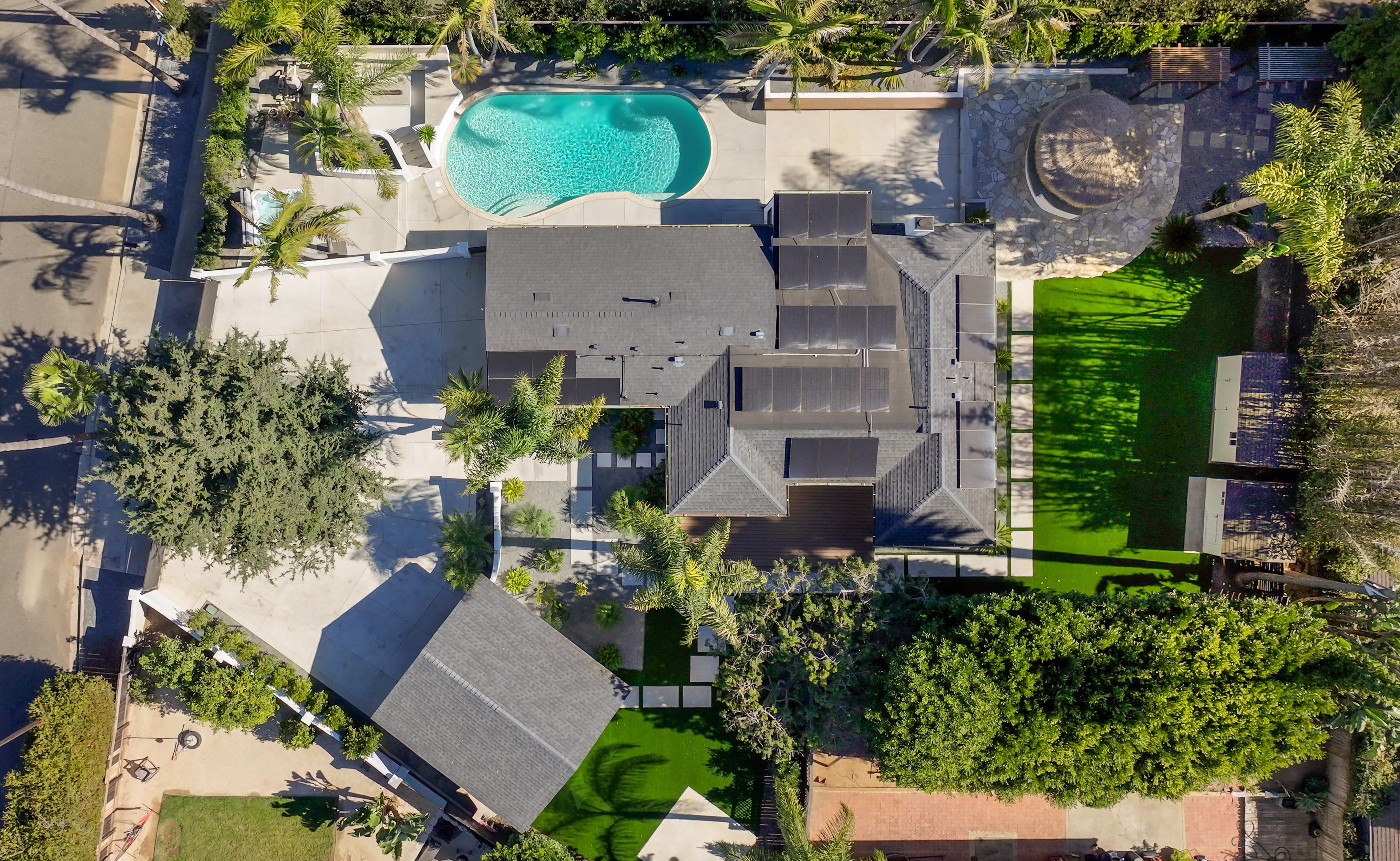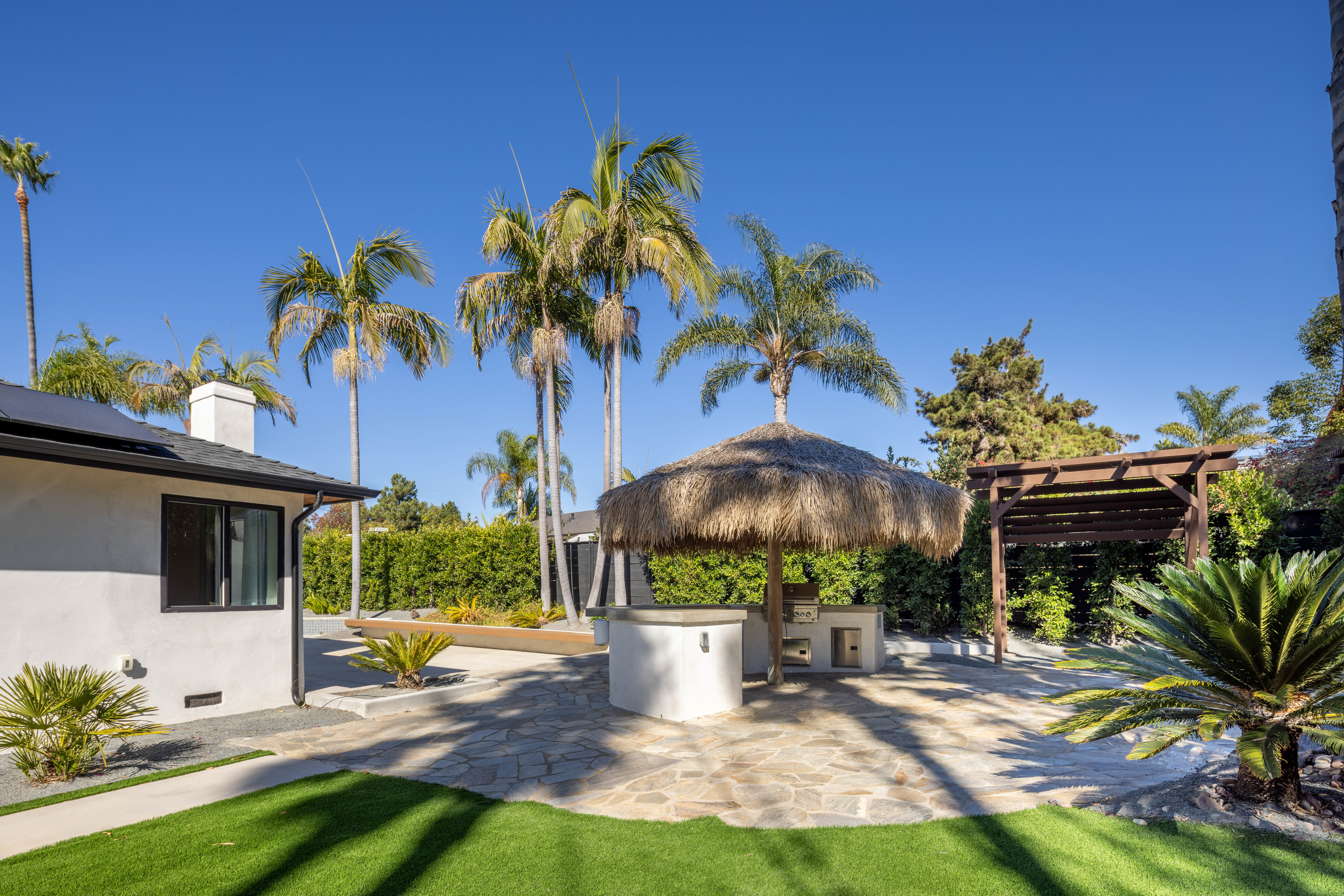 Stunning single-level coastal modern smart home with ocean views, cohesive upgrades, and an expansive backyard oasis in Fire Mountain, just minutes to the beach. Recently reimagined with high-end design in mind and curated by a professional artist. Filled with natural light, the home features open living, multiple seating areas, and an alcove dining room. The gourmet kitchen boasts two-tone linen and Halifax Oak cabinetry, luxury white Café appliances, and porcelain countertops. Sliding glass doors frame the kitchen and living areas from all sides, expanding the space to the wraparound yard, creating an indoor-outdoor lifestyle. The layout includes dual primary suites, each with an ensuite bath featuring decorative tile and custom lighting. Perfect for entertaining, the outdoor space offers a pool with water features, hot tub, raised seating with firepit, and multiple areas for dining & lounging, including a built-in bbq bar with Tahitian-style palapa. Additional highlights include owned solar, two Tesla batteries, EV charger, smart lighting and AV system with indoor & outdoor surround sound. An oversized detached two-car garage with epoxy flooring and two large sheds provide additional space for storage, a gym, or studio office. Dual electric gates with circular driveway offering security, privacy, and ample parking. Within biking distance to the beach and close to top-rated schools, parks, shopping, and dining. Enjoy coastal living at its best.