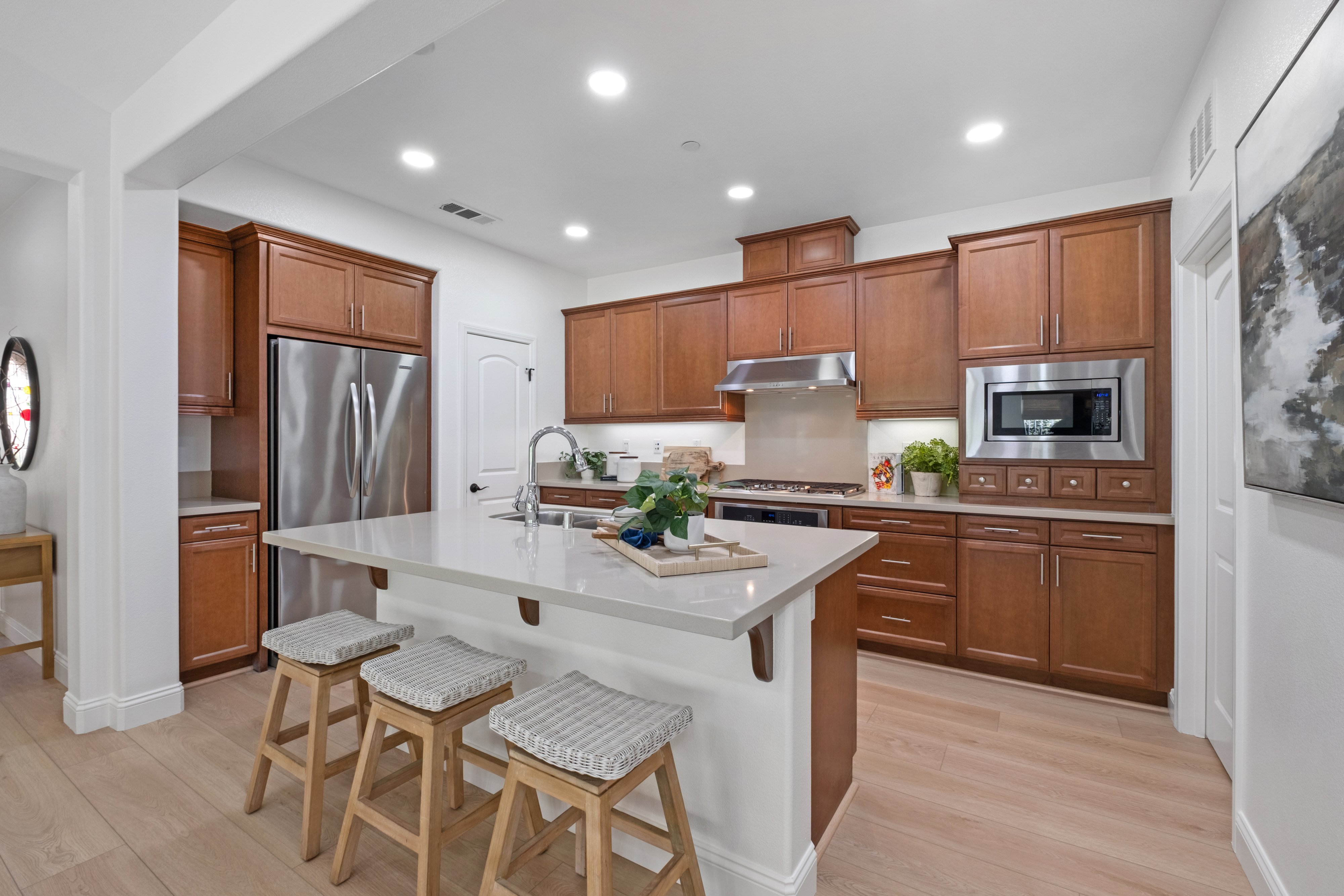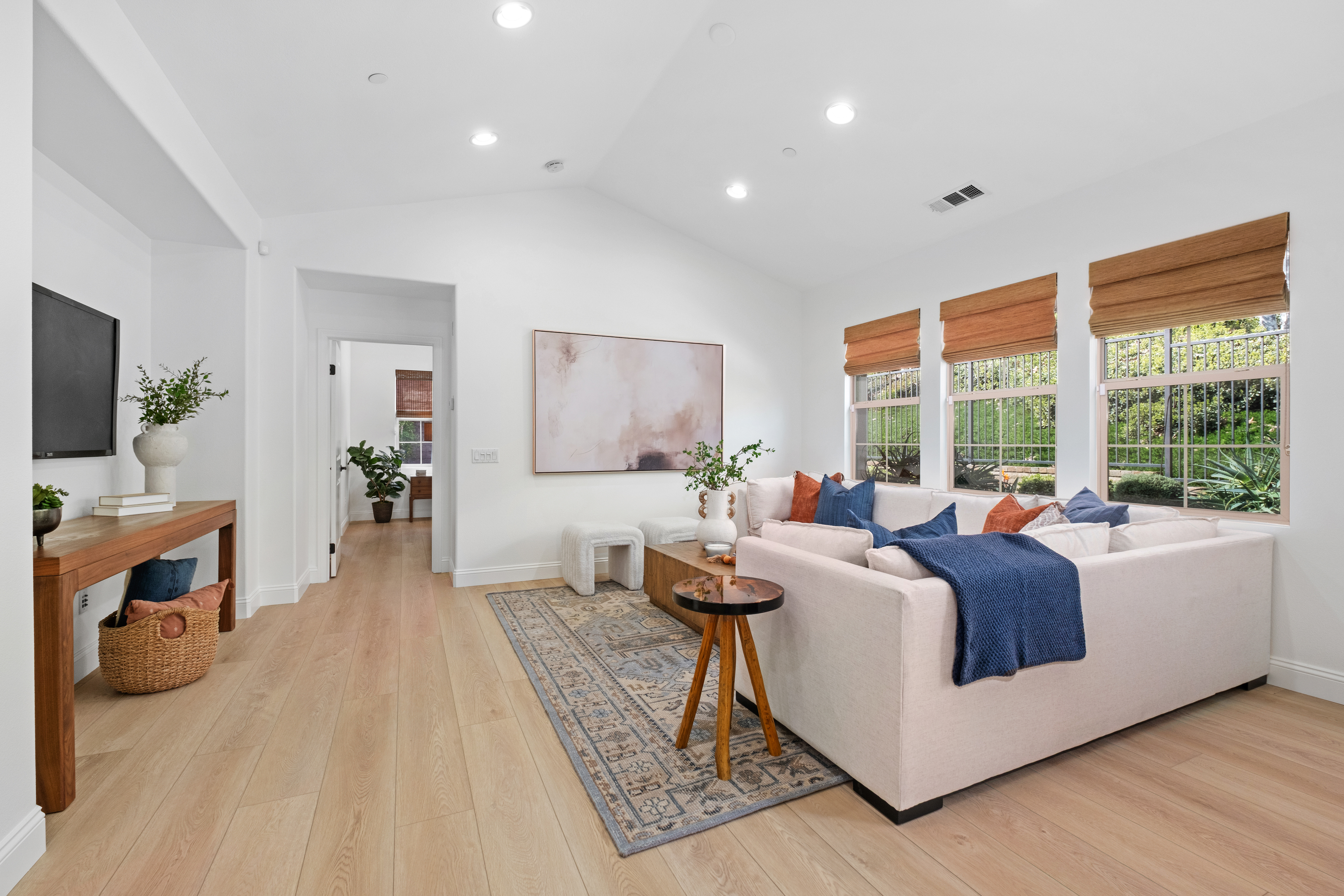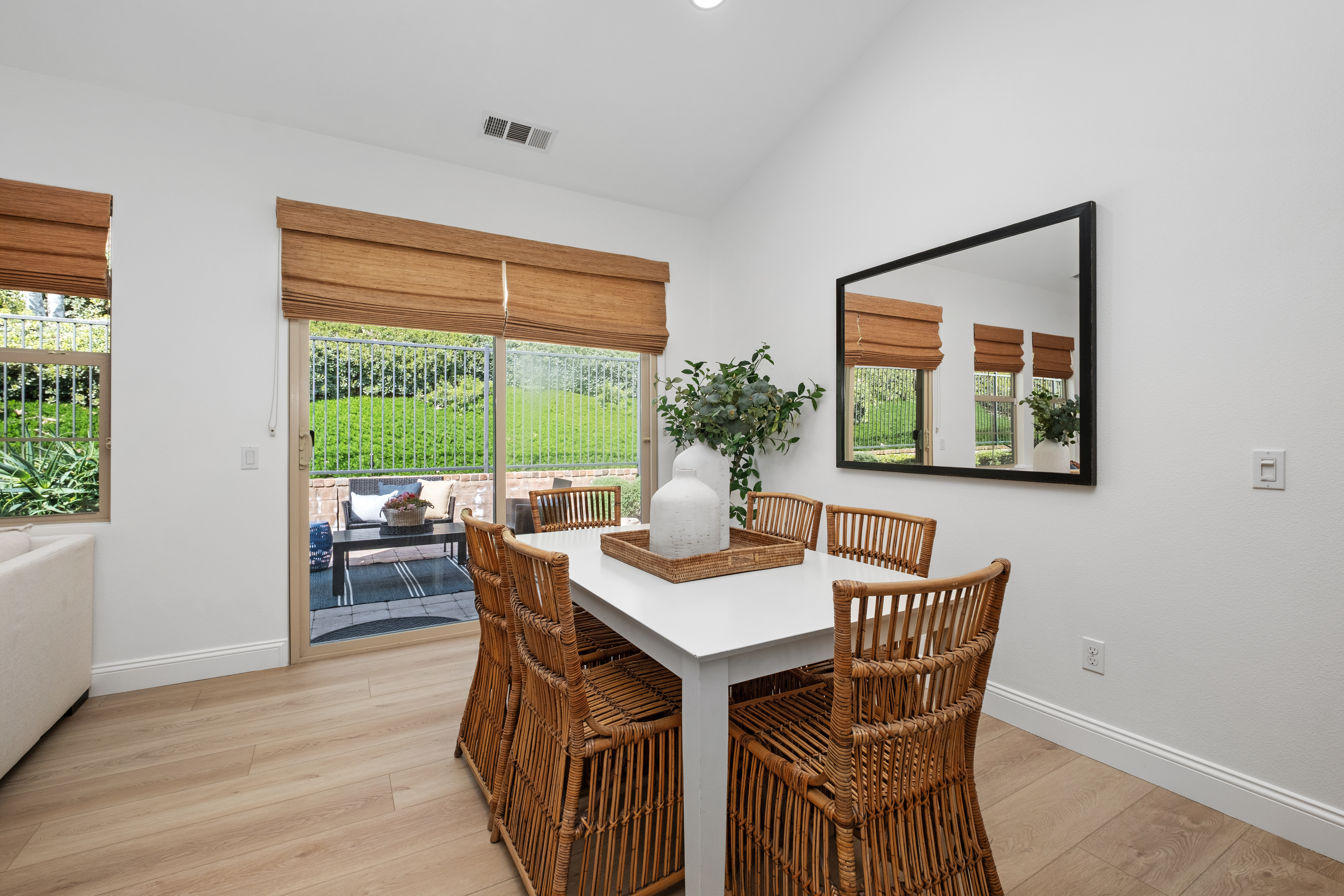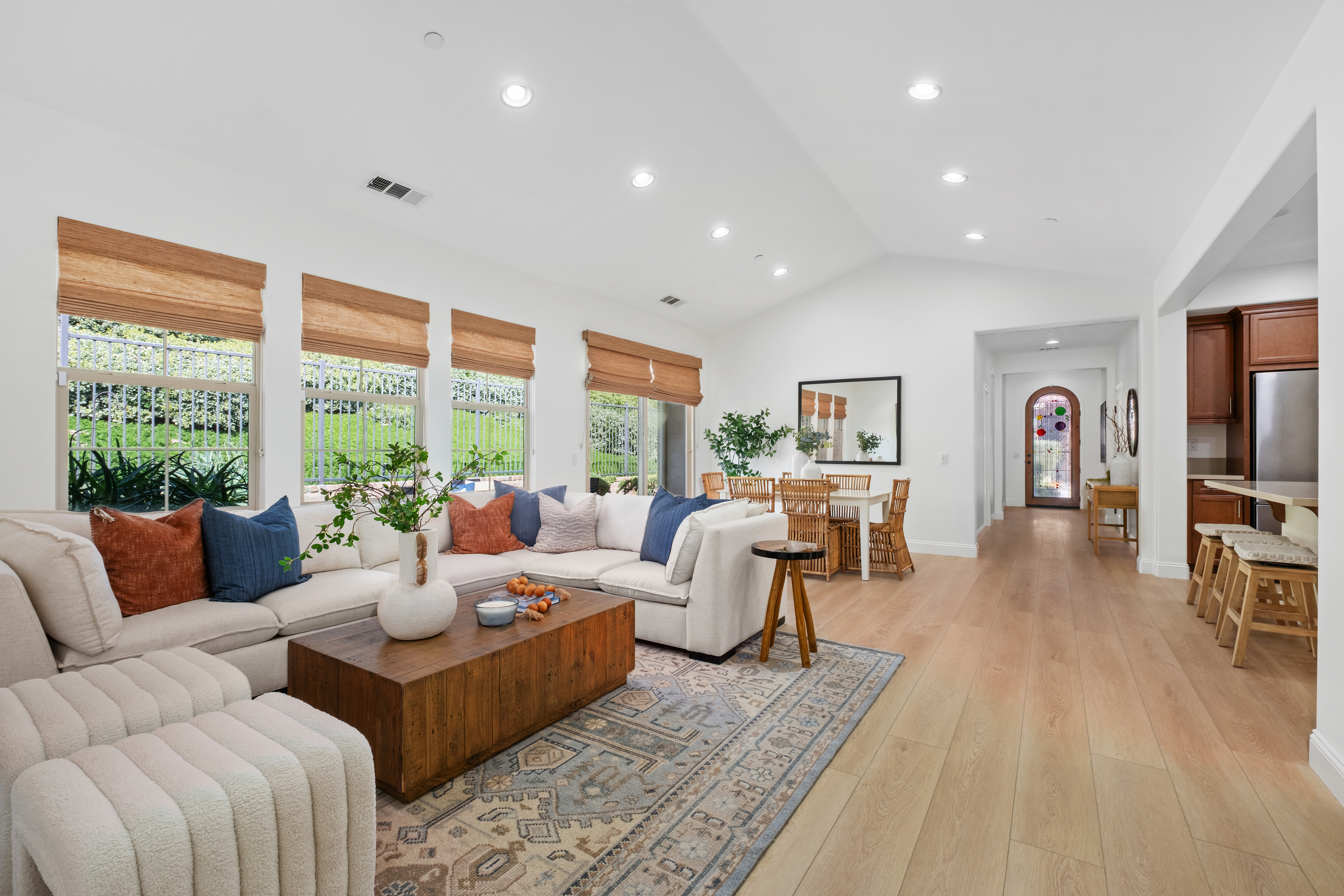 Welcome to Gavilan in Sendero, the premier gated 55+ active adult enclave within Rancho Mission Viejo. As the only gated community in RMV, Sendero offers an unmatched blend of privacy, security, and resort-style living. Tucked away at the end of a quiet cul-de-sac, this beautifully appointed 3-bedroom, 2-bathroom Single-Level Home showcases an open-concept design that seamlessly connects the kitchen, dining, and living areas—perfect for both everyday comfort and effortless entertaining. Expansive windows fill the home with natural light, creating a warm, inviting atmosphere. The spacious kitchen serves as the heart of the home featuring generous counter space, modern appliances, a walk-in pantry, and ample cabinetry. A separate laundry room includes a sink and ample counter & cabinet space. The primary suite provides a peaceful retreat with an ensuite bathroom featuring an oversized shower and walk-in closet. Two additional bedrooms provide flexibility for guests, a home office, or hobbies. Freshly painted throughout, the home showcases a bright, refreshed interior complimented by new French oak–style luxury vinyl plank flooring that flows seamlessly from room to room, enhancing the open concept design. Outside, desertscape landscaping delivers a sustainable, low-maintenance, water-efficient outdoor environment perfect for effortless living & entertaining. Just a short stroll from the home, and conveniently located within the gates is The Hacienda, Sendero’s exclusive 55+ clubhouse designed as the social heart of the community featuring a resort-style pool and spa, fitness center, event bar, gathering spaces, studios, lending library, and three lighted bocce courts. Sendero residents also enjoy exclusive access to even more recreational spaces designed specifically for active 55+ living. These include The Outlook, The Getaway, The Perch, The BBQ Barn, and The Club. But that's not all! Residents also enjoy full access to RMV’s all-age amenities such as clubhouses, parks, pools, fitness centers, sports fields, community farms, scenic trails, a dog park, and nearby shopping and dining. With all these world class amenities, Gavilan Sendero residents truly experience the best of both vibrant 55+living and the expansive all-ages lifestyle of Rancho Mission Viejo. Even more appealing, Gavilan Sendero homeowners benefit from one of the lowest Mello-Roos assessments in Rancho Mission Viejo, offering exceptional value within this premier gated 55+ enclave.