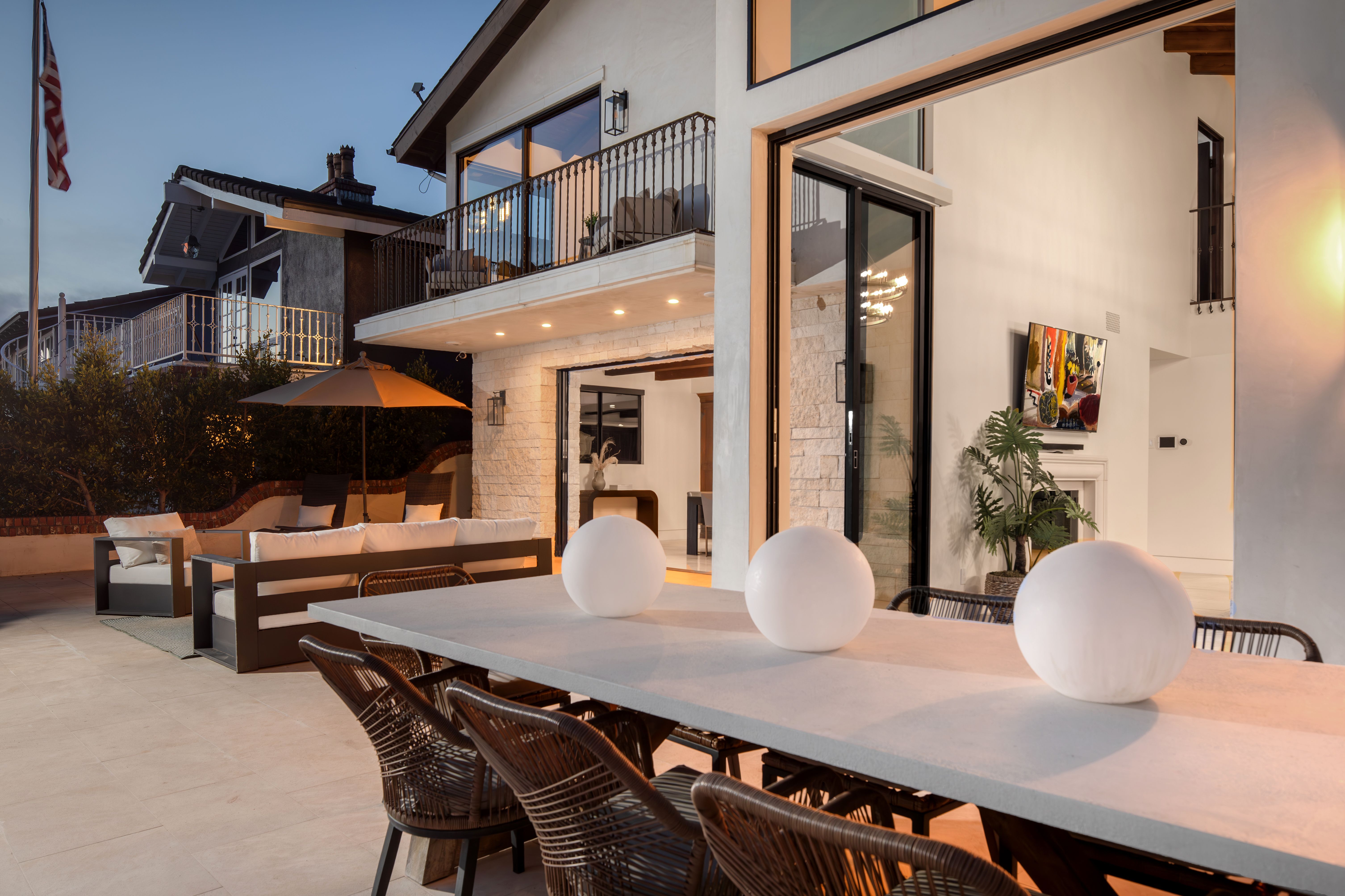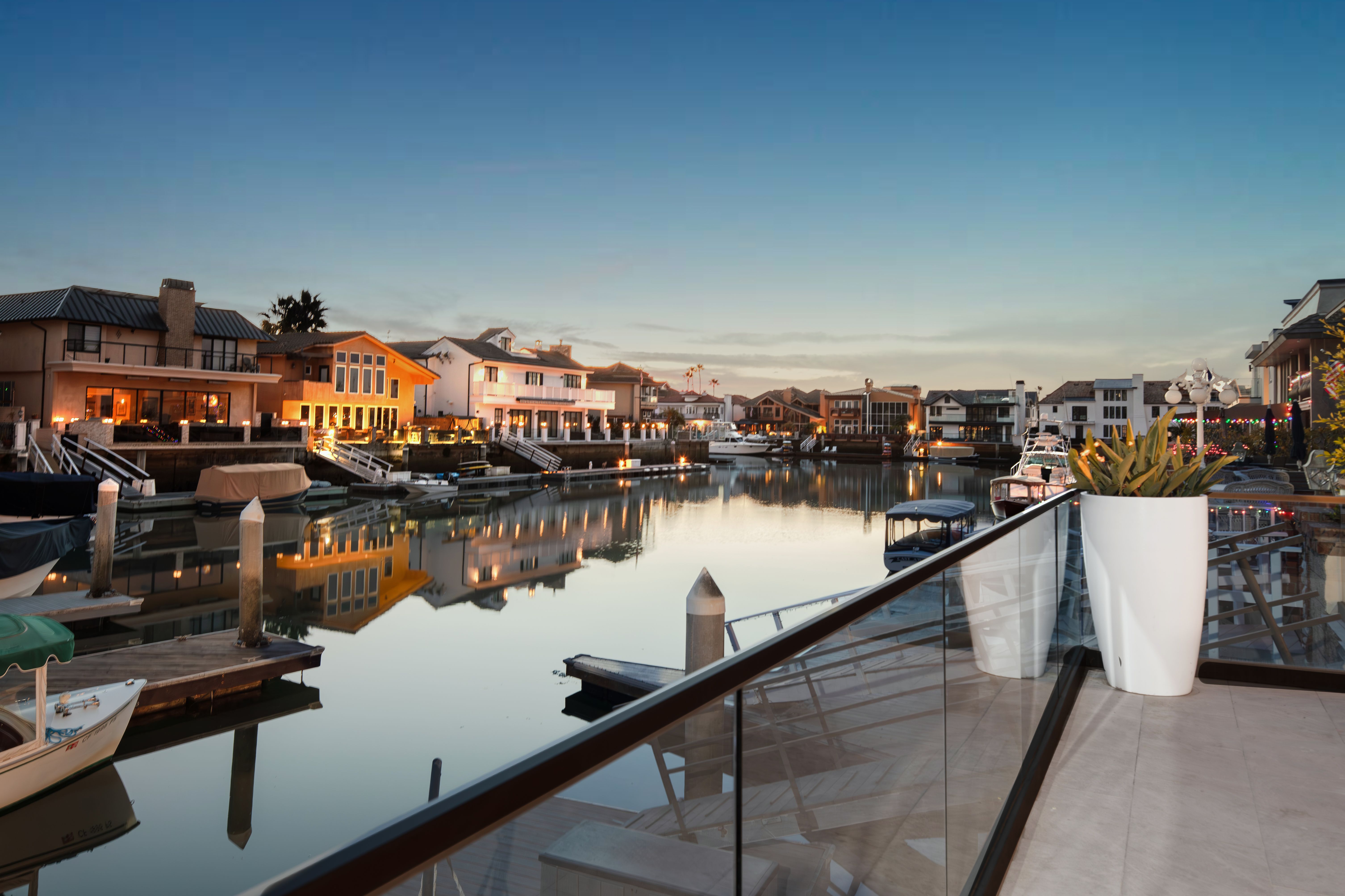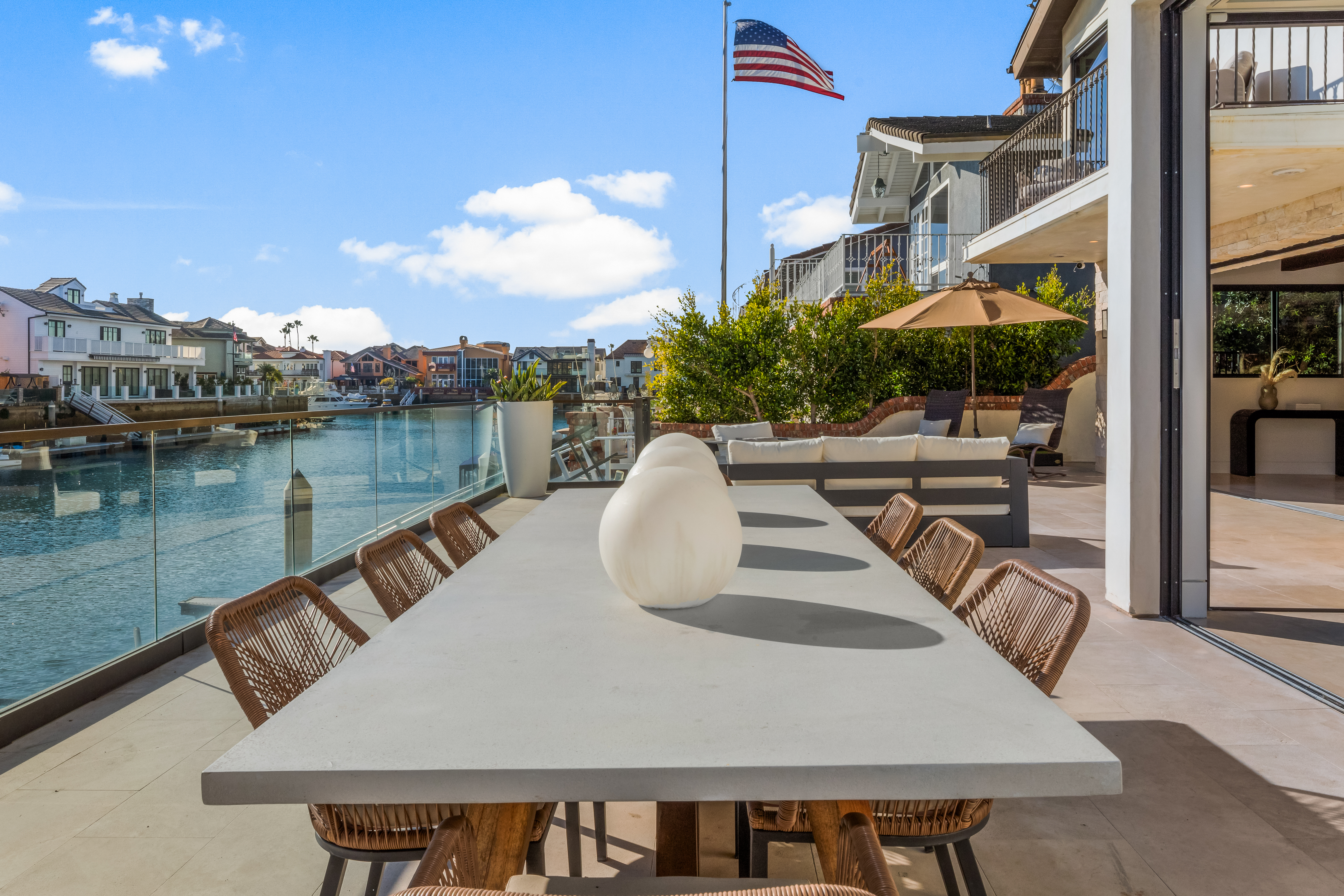 Resting along the water in Huntington Harbour’s Mainland, the home introduces a sense of serenity that deepens as you move through it. Light moves through the home from morning to dusk, and the indoor and outdoor spaces connect with an ease that feels both natural and elevated. The entry sequence sets the tone. A private gated courtyard with a linear fireplace and generous seating creates a gentle transition from the street to the tranquility inside. Once through the door, the scale expands in a quiet, dramatic way. Tall wood detailed ceilings, sculptural ironwork along the curved staircase, and expansive glass that frames the harbor guide you into the heart of the home. The kitchen serves as the anchor. Custom millwork, rare stone surfaces, and professional grade Thermador appliances reflect a balanced blend of beauty and function. A fully outfitted butler’s pantry and a temperature controlled wine gallery add thoughtful layers to the space. The surrounding living and dining areas flow naturally around the kitchen, all oriented toward the water and connected through wide Fleetwood openings that dissolve the boundary between interior and exterior. Upstairs, the primary suite becomes a private retreat with its own terrace overlooking the harbor, a spa inspired bath, and a dedicated wardrobe room. Additional bedrooms and baths continue the home’s commitment to craftsmanship and comfort, each one refined, peaceful, and well considered. Outdoor living is an extension of the home itself. The waterfront terrace spans fifty feet of frontage, providing a generous setting for both intimate evenings and lively gatherings. A built in barbecue bar, warm ambient lighting, and a private dock with space for a thirty six foot boat create an environment meant to be lived in and enjoyed. Throughout the property, every detail has been chosen with intention. Smart home integrations, designer lighting, rich materials, and crafted finishes come together to create a residence that is elevated without feeling overdone. More than a home, it is a refined expression of coastal living. Warm. Welcoming. Designed for the way people truly live.