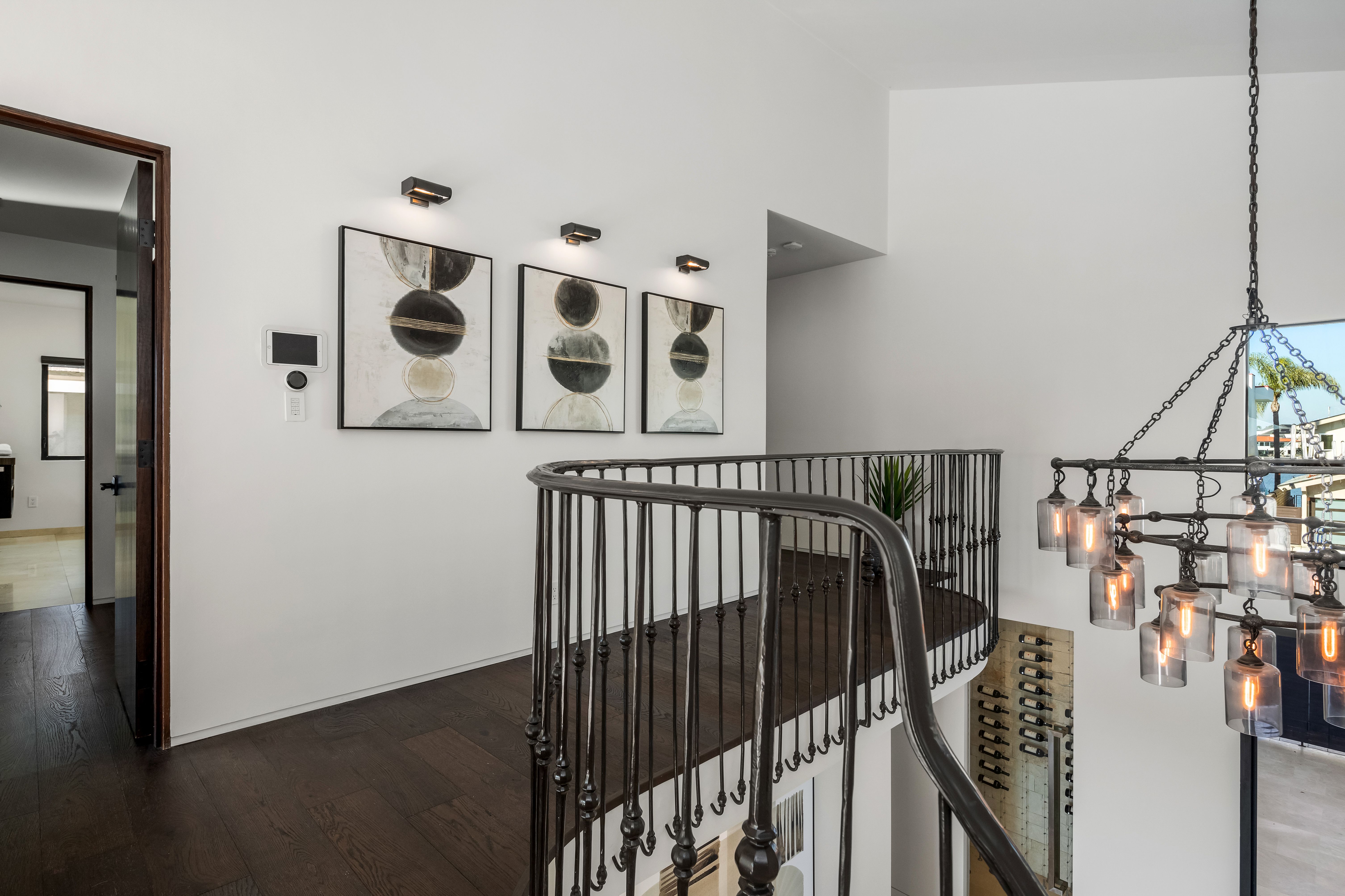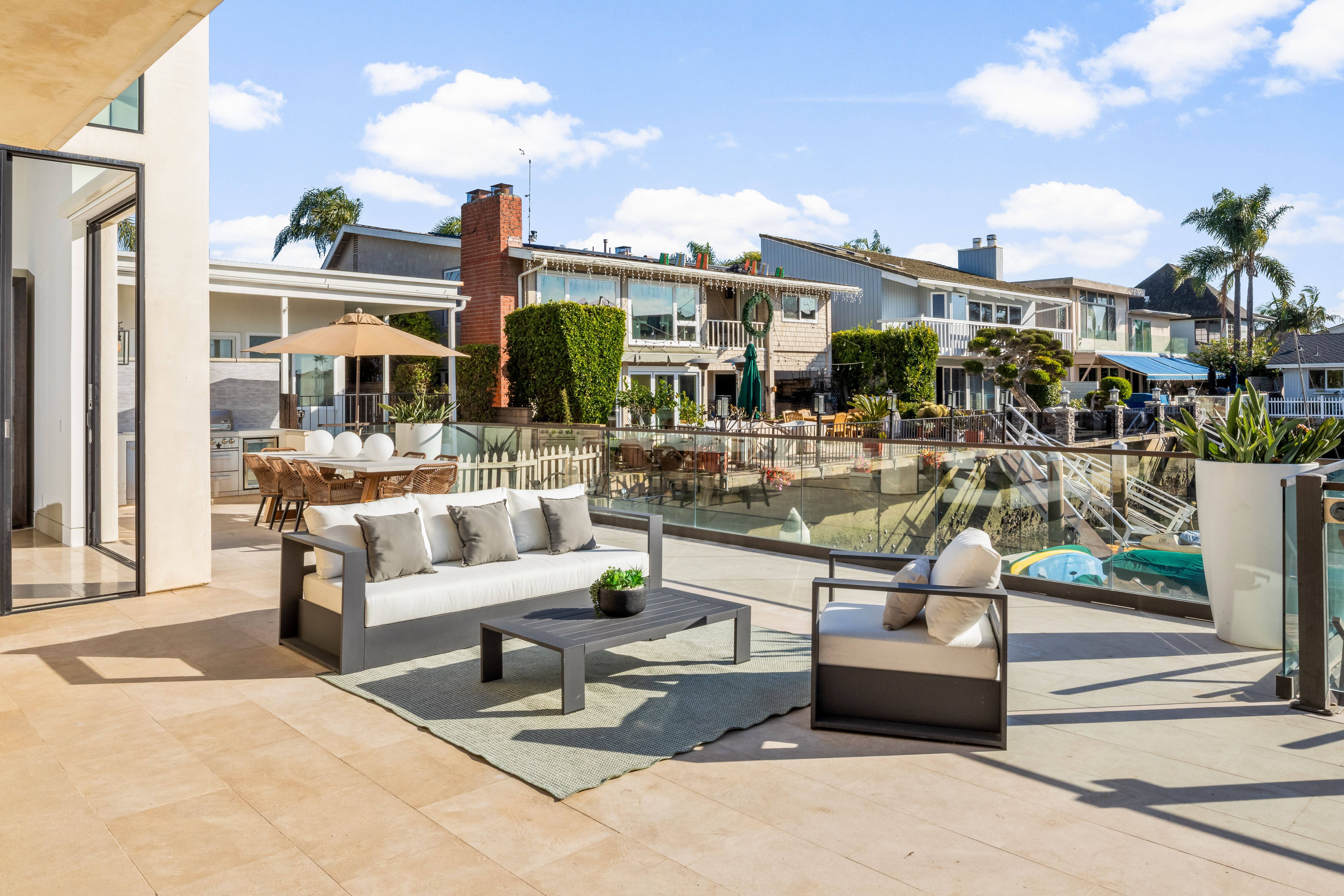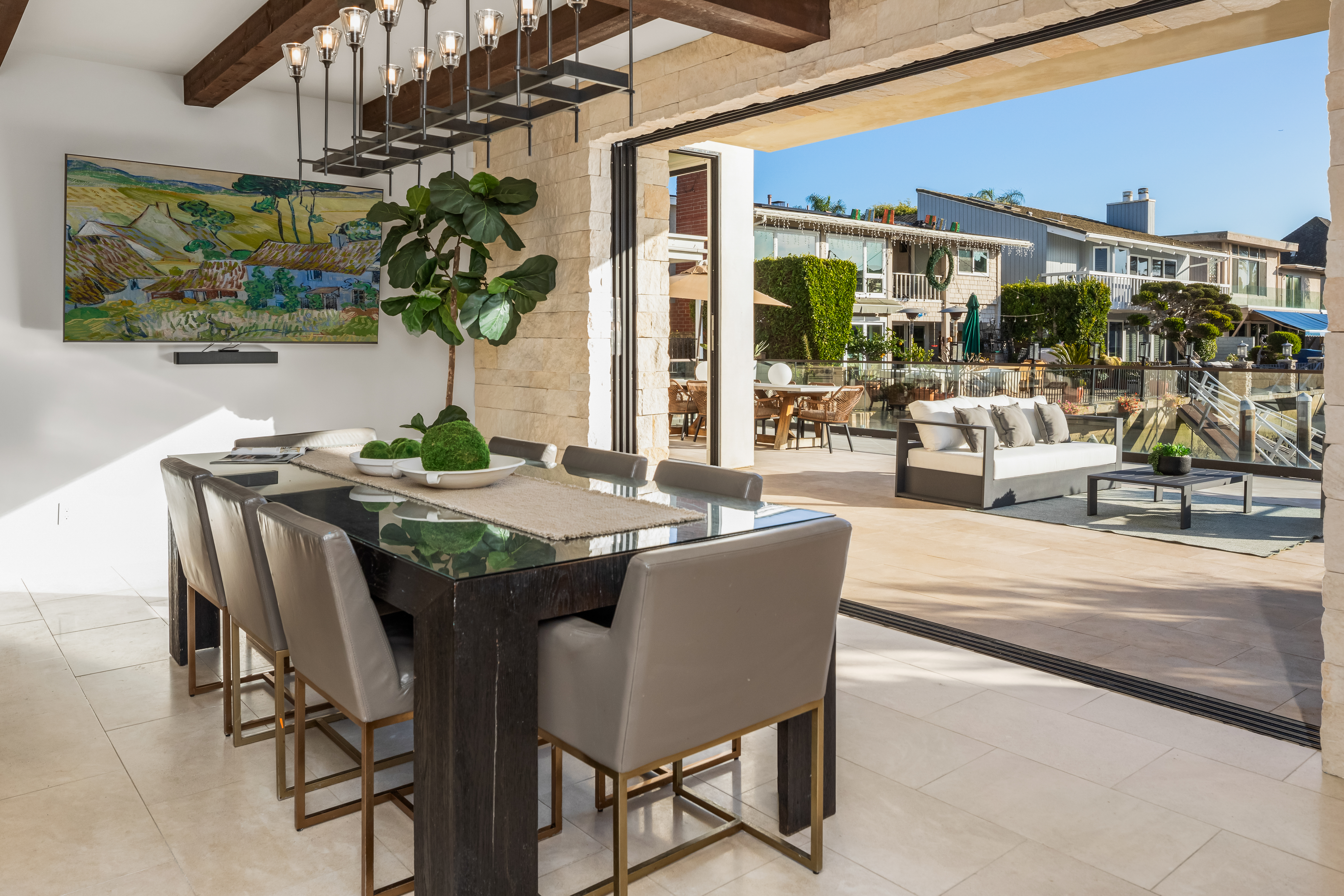 Resting along the water in Huntington Harbour’s Mainland, the home introduces a sense of serenity that deepens as you move through it. Light moves through the home from morning to dusk, and the indoor and outdoor spaces connect with an ease that feels both natural and elevated. The entry sequence sets the tone. A private gated courtyard with a linear fireplace and generous seating creates a gentle transition from the street to the tranquility inside. Once through the door, the scale expands in a quiet, dramatic way. Tall wood detailed ceilings, sculptural ironwork along the curved staircase, and expansive glass that frames the harbor guide you into the heart of the home. The kitchen serves as the anchor. Custom millwork, rare stone surfaces, and professional grade Thermador appliances reflect a balanced blend of beauty and function. A fully outfitted butler’s pantry and a temperature controlled wine gallery add thoughtful layers to the space. The surrounding living and dining areas flow naturally around the kitchen, all oriented toward the water and connected through wide Fleetwood openings that dissolve the boundary between interior and exterior. Upstairs, the primary suite becomes a private retreat with its own terrace overlooking the harbor, a spa inspired bath, and a dedicated wardrobe room. Additional bedrooms and baths continue the home’s commitment to craftsmanship and comfort, each one refined, peaceful, and well considered. Outdoor living is an extension of the home itself. The waterfront terrace spans fifty feet of frontage, providing a generous setting for both intimate evenings and lively gatherings. A built in barbecue bar, warm ambient lighting, and a private dock with space for a thirty six foot boat create an environment meant to be lived in and enjoyed. Throughout the property, every detail has been chosen with intention. Smart home integrations, designer lighting, rich materials, and crafted finishes come together to create a residence that is elevated without feeling overdone. More than a home, it is a refined expression of coastal living. Warm. Welcoming. Designed for the way people truly live.