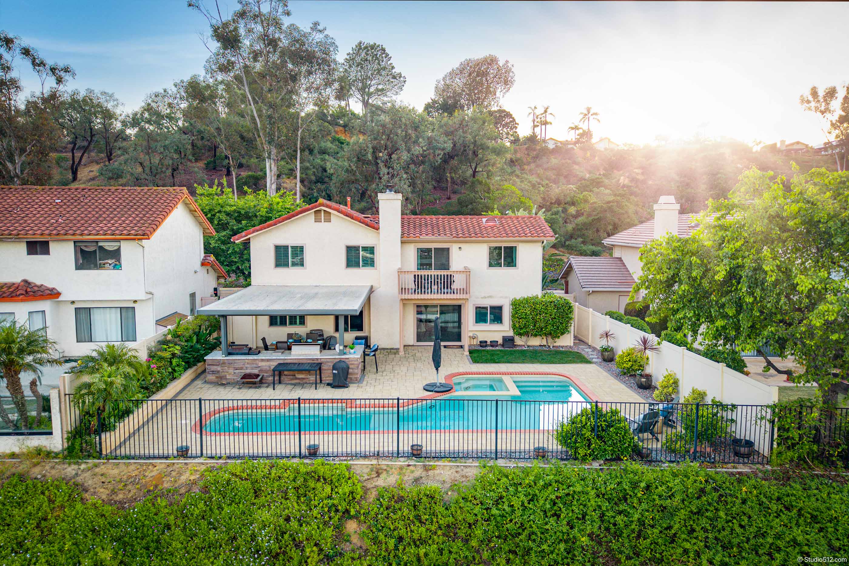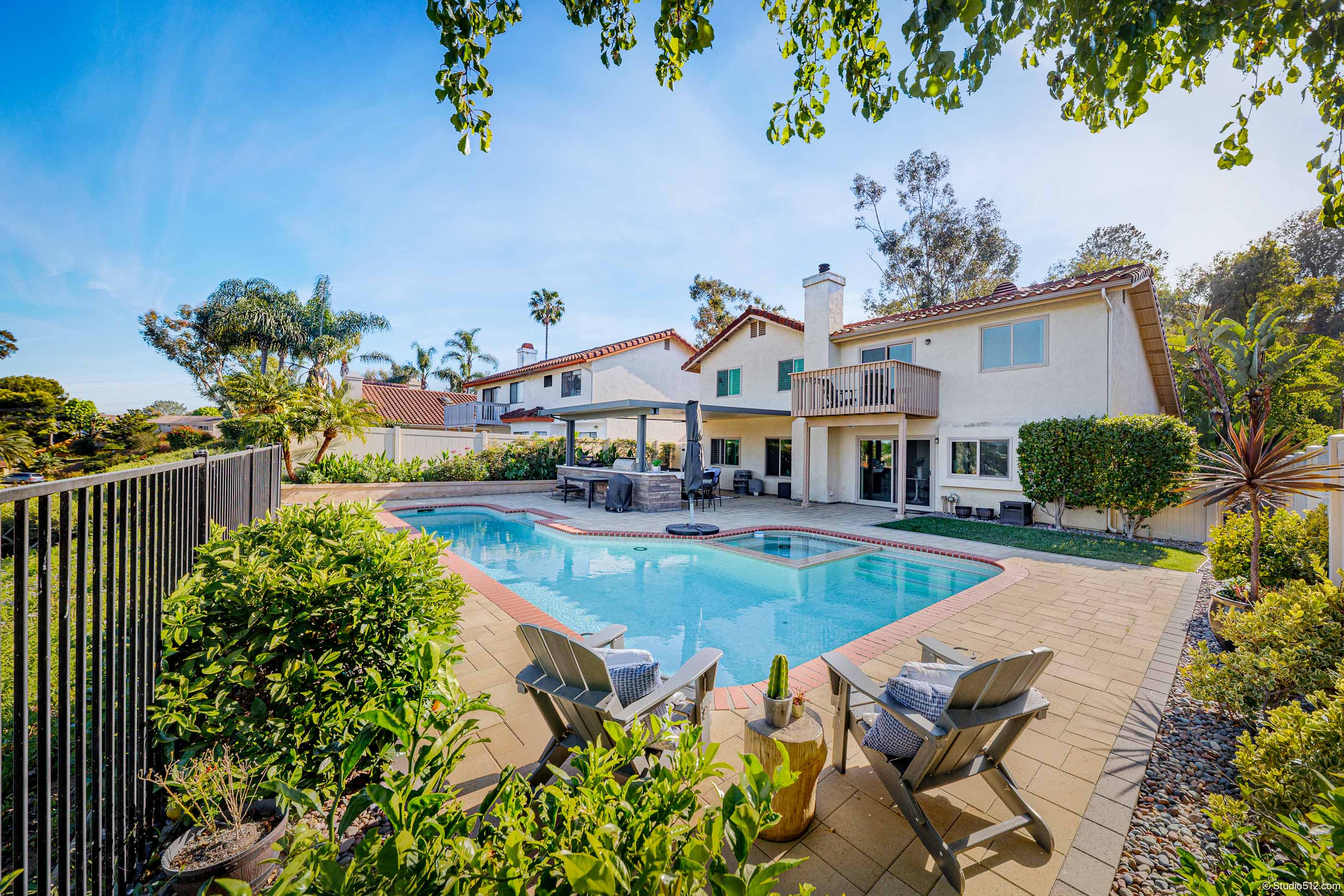 Step into a refined sense of comfort and privacy with this beautifully appointed two-story home, ideally situated in the heart of Encinitas, CA. Tucked away on a quiet cul-de-sac and set on a generous lot just under 10,000 square feet, this residence offers both space and serenity. Originally built in 1986 and thoughtfully expanded to 2,336 square feet, the home features four well-proportioned bedrooms and tastefully remodeled bathrooms, creating a flexible layout suited for both everyday living and hosting. With no neighbors in front and clear views to the east in the backyard, the setting feels peaceful and secluded. From the moment you enter, the home welcomes you with a sense of warmth and quality. At its center is a fully reimagined kitchen designed for both functionality and style. Outfitted with premium Wolf appliances including a gas range, oven, and microwave, along with a Sub-Zero refrigerator, this space is ideal for culinary enthusiasts. Quartz countertops, a designer backsplash, and custom Bellmont cabinetry complete the space with a clean, modern finish. The adjoining living area features engineered hardwood flooring and a slate tile fireplace, complemented by an Indonesian Rosewood mantle. A custom-built bar crafted from a Zinfandel barrel sourced from Powell Mountain Cellars adds a distinctive and inviting touch. Vaulted ceilings and Plantation shutters enhance the sense of openness while maintaining privacy. An additional downstairs bedroom can be used as an office or den with a full bath in the hall. The private primary suite offers a serene and thoughtfully designed retreat, enhanced by brand new carpet, tile flooring and an abundance of natural light. The spa inspired ensuite features dual vanity sinks, a spacious walk-in closet, and a separate soaking tub and shower, creating a perfect balance of comfort and functionality for everyday living. The secondary bedrooms are generously sized and enjoy soft east facing views, bringing in beautiful morning light. Each room is equipped with new carpet and ceiling fans with remote controls for added convenience. The guest bathroom is equally well appointed, featuring dual vanity sinks and a combination tub and shower with a sleek glass enclosure, providing both style and practicality for family and visitors. A spacious east facing bonus room opens to a private balcony finished with durable TREX decking, offering a peaceful setting to enjoy morning light and views of the backyard and pool. The outdoor space has been carefully upgraded to support both relaxation and entertaining. Features include new vinyl fencing, Belgard pavers, and a large covered Alumawood patio cover. The outdoor kitchen area is equipped with a Lynx grill, refrigerator, Yoder smoker, and granite countertops, making it ideal for gatherings. The pool and spa provide a refreshing retreat, supported by a newly installed Pentair Superflo VS pump in 2025. Additional improvements throughout the home include updated PEX plumbing, a new gas water heater, Milgard windows for improved energy efficiency, and a high-performance skylight in the primary bedroom with remote operation. A whole house fan offers an efficient way to keep the upstairs cool and comfortable. With a two-car garage offering ample storage and a location just minutes from Encinitas beaches, dining, award winning schools and community amenities, this home presents a rare opportunity to enjoy comfort, privacy, and coastal convenience in one of North County’s most sought-after areas.